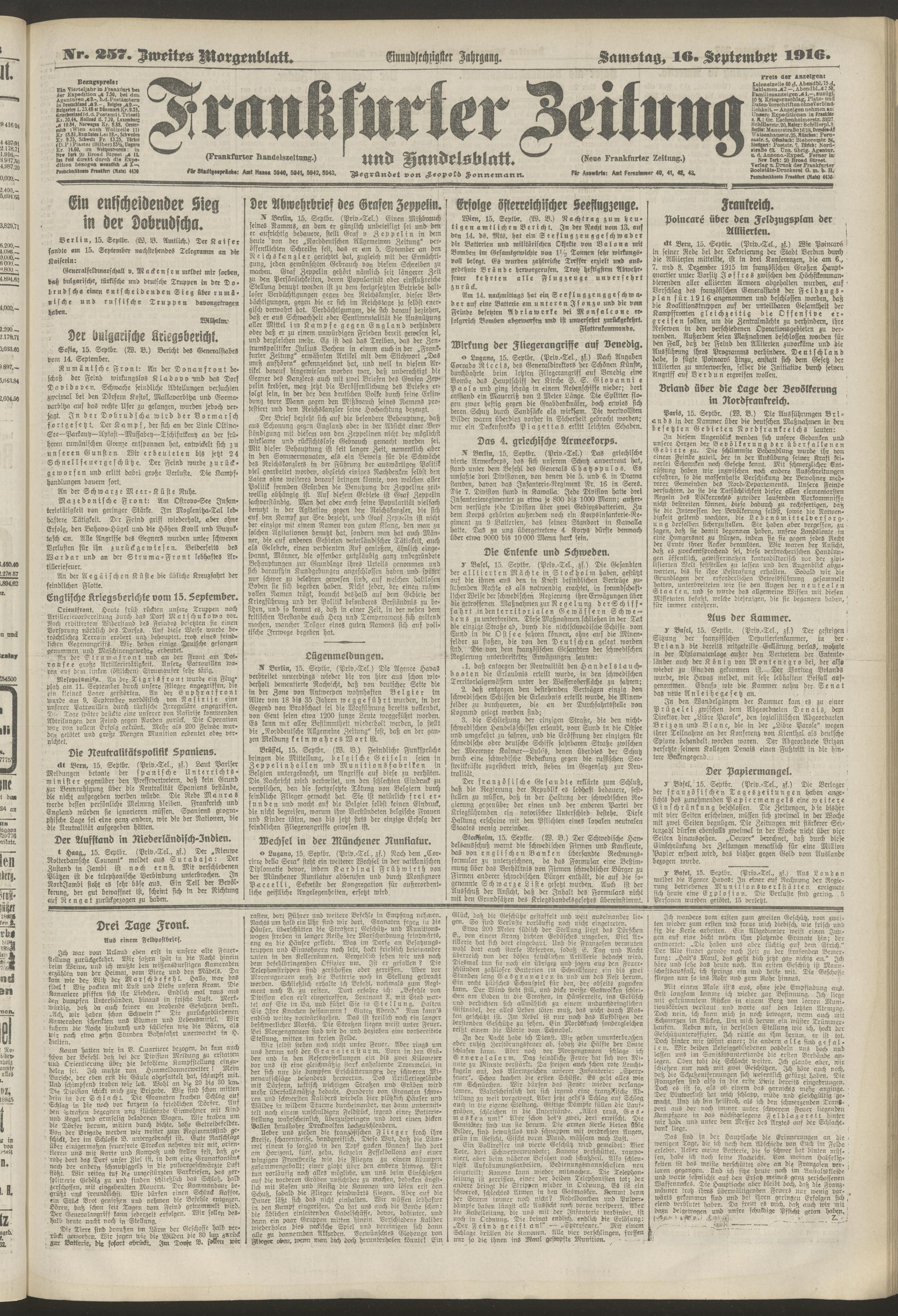 16.09.1916 = Nr. 257. Zweites Morgenblatt