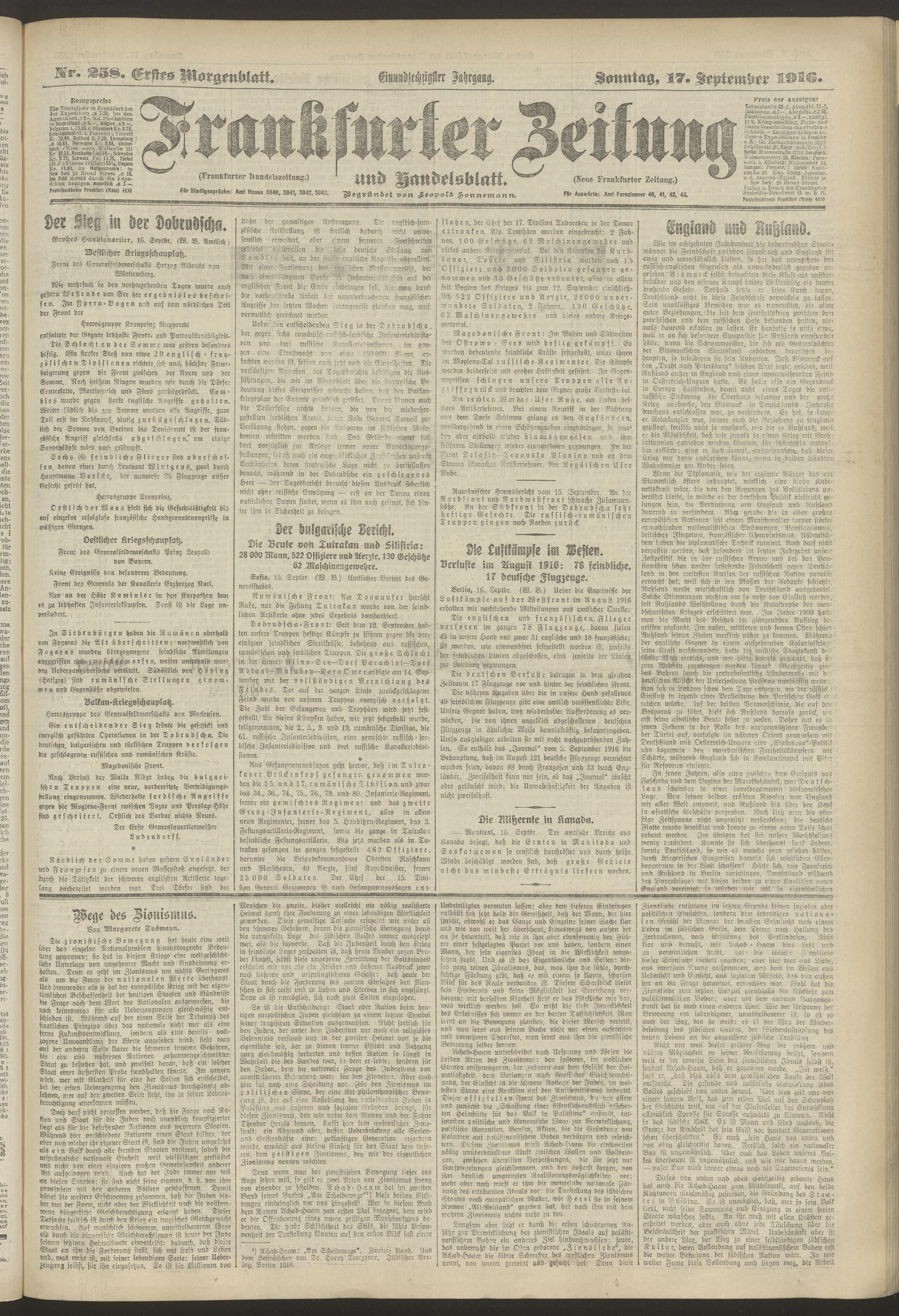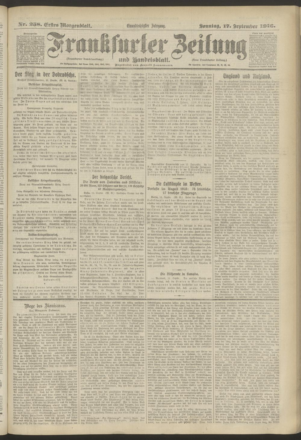 17.09.1916 = Nr. 258. Erstes Morgenblatt