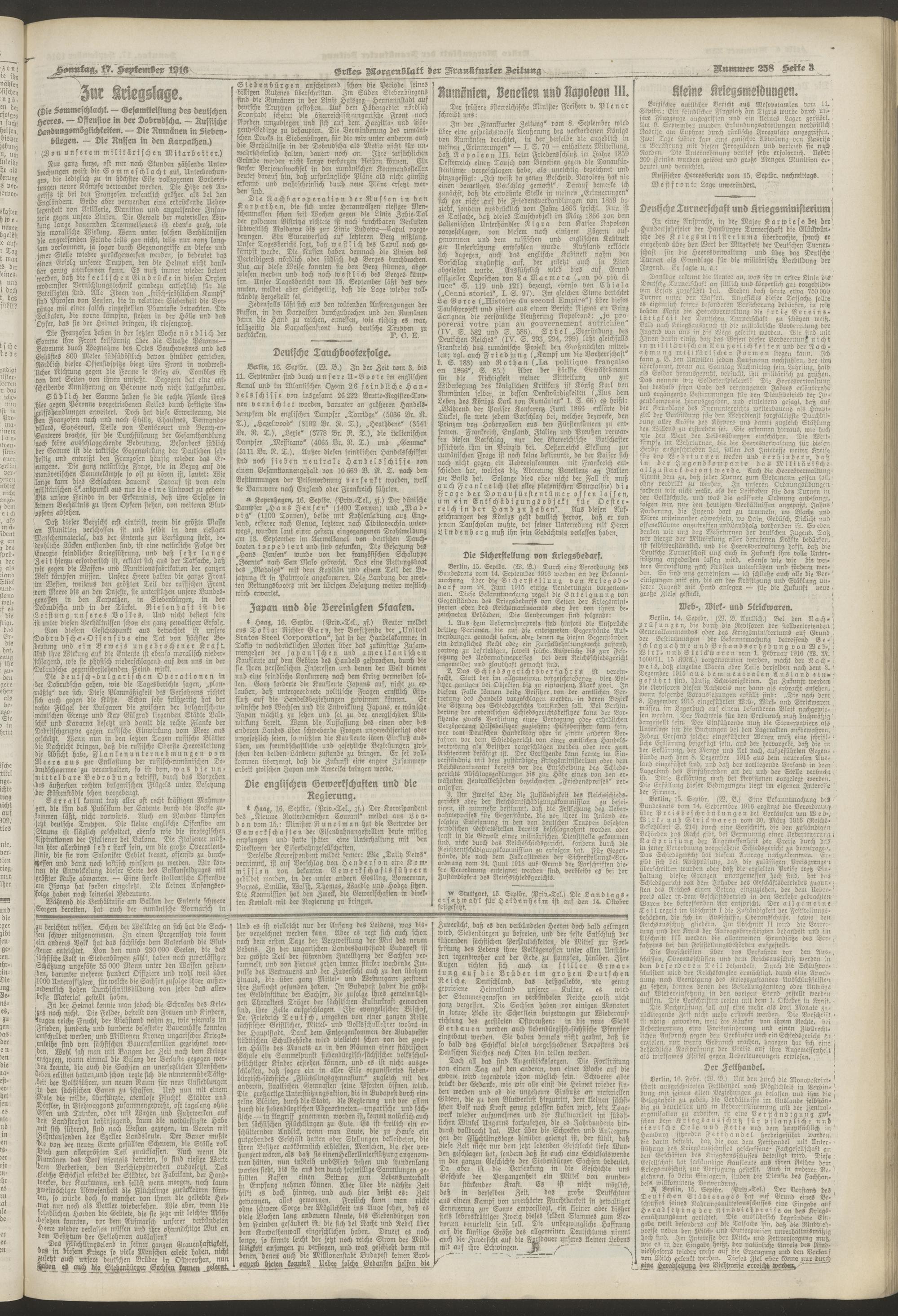 17.09.1916 = Nr. 258. Erstes Morgenblatt