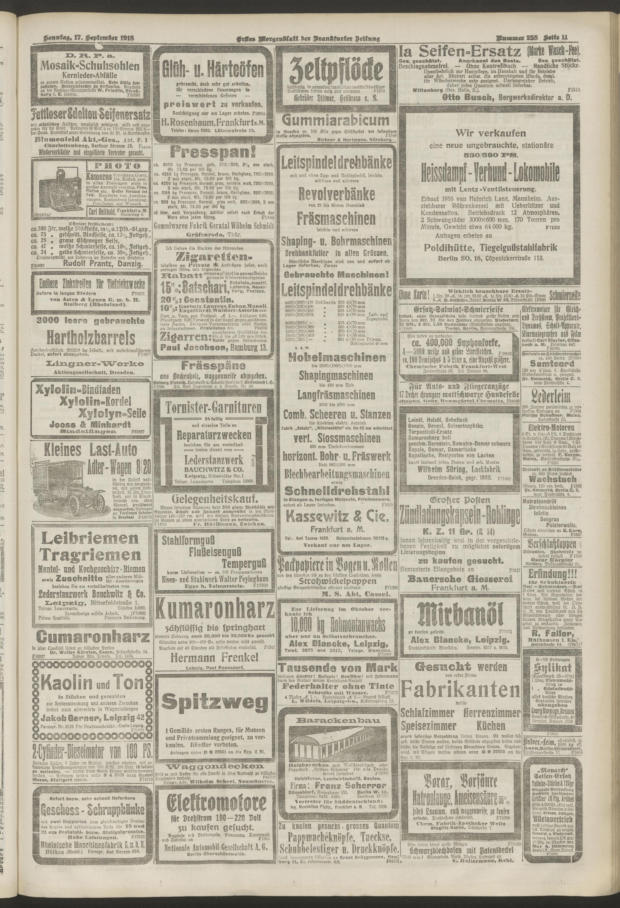 17.09.1916 = Nr. 258. Erstes Morgenblatt
