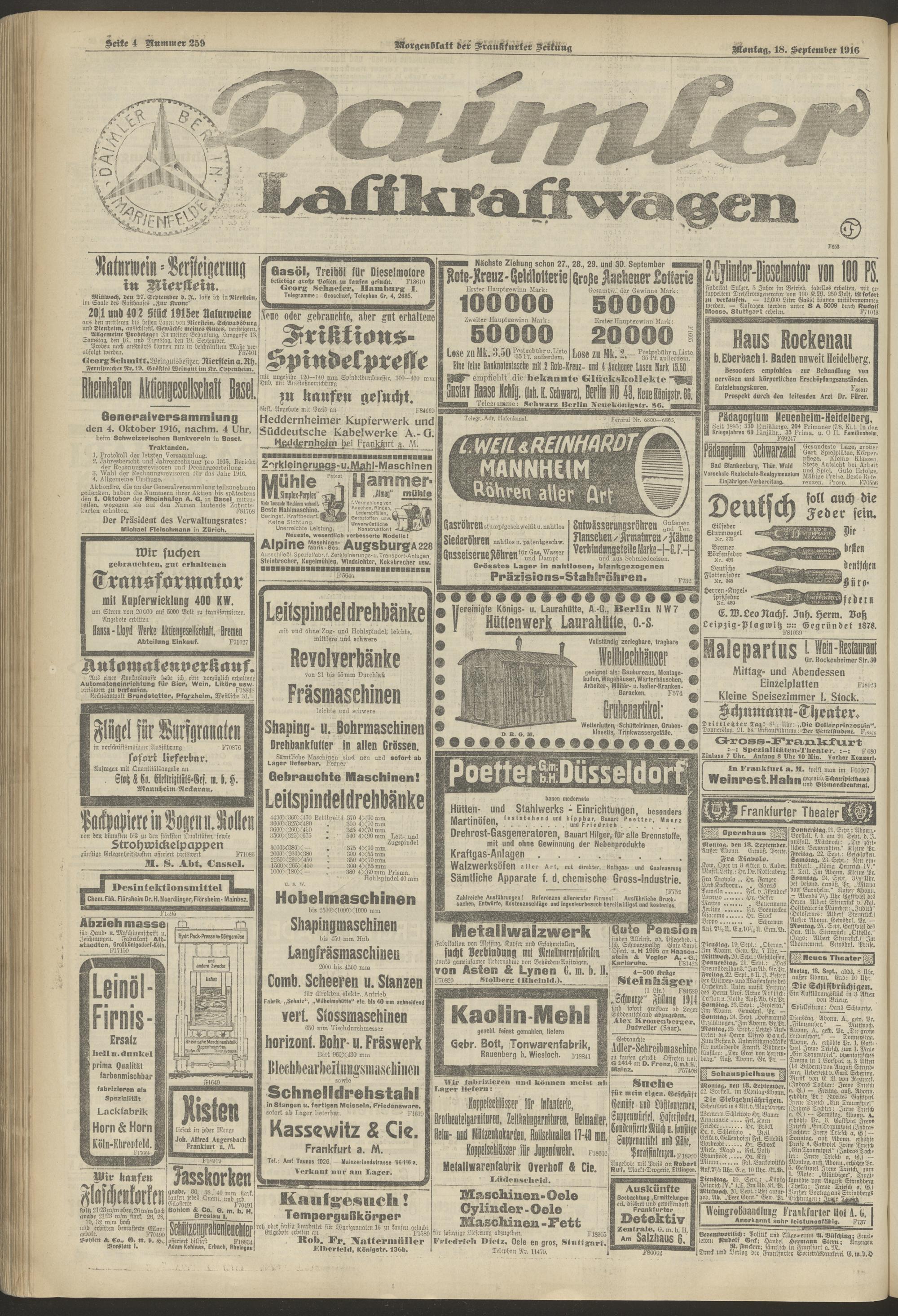 18.09.1916 = Nr. 259. Morgenblatt
