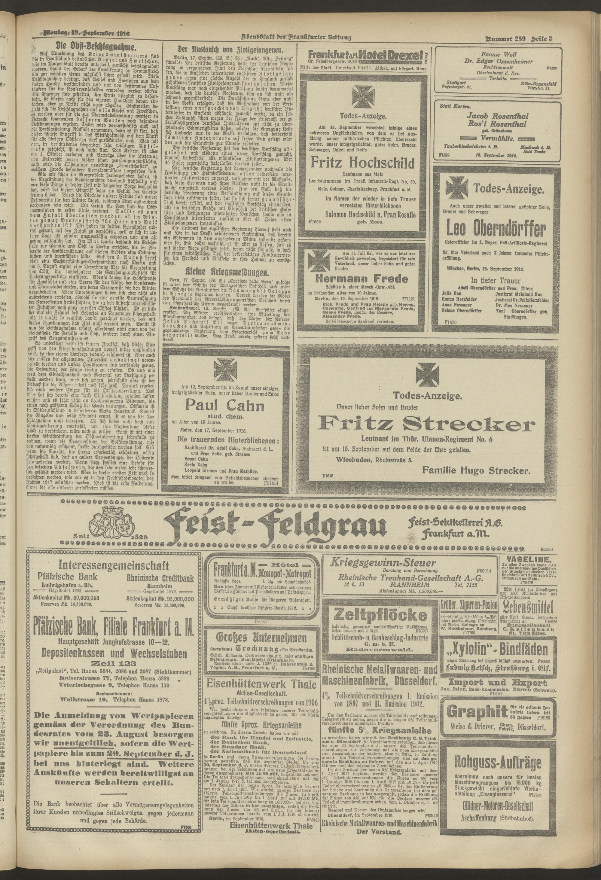 18.09.1916 = Nr. 259. Abendblatt