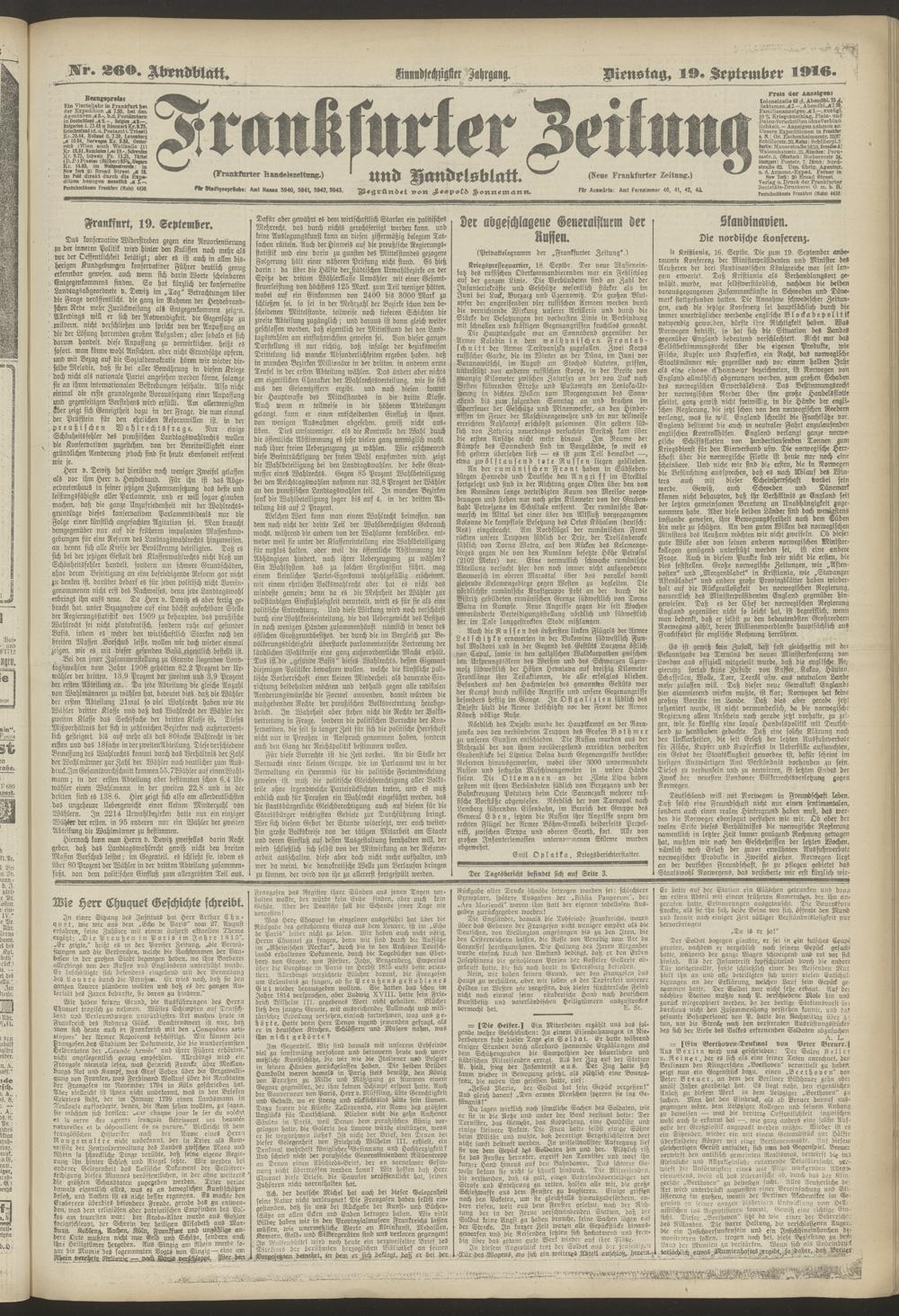 19.09.1916 = Nr. 260. Abendblatt