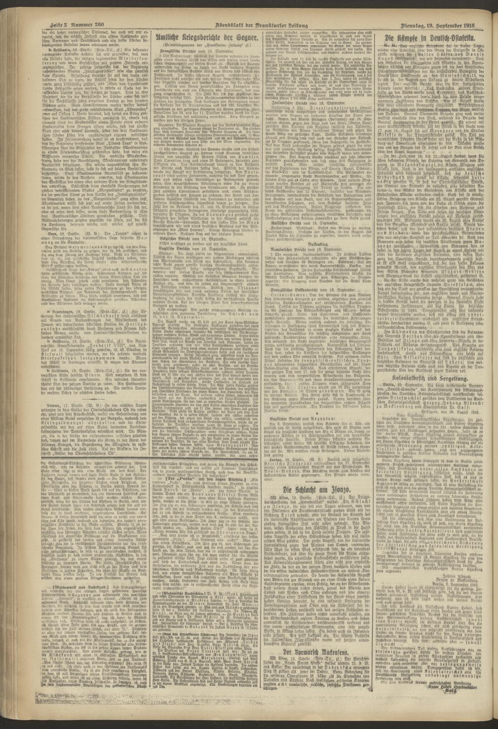19.09.1916 = Nr. 260. Abendblatt