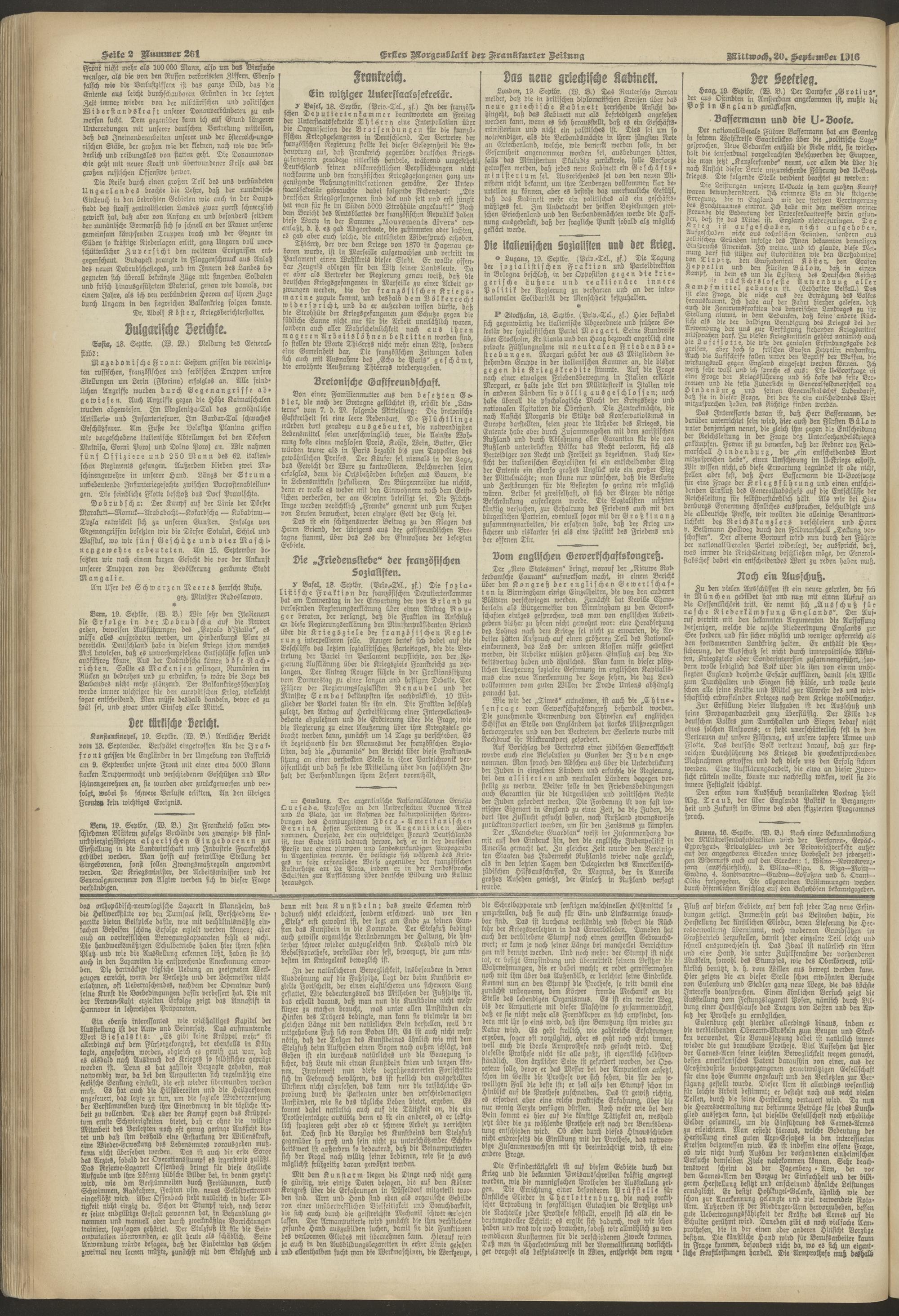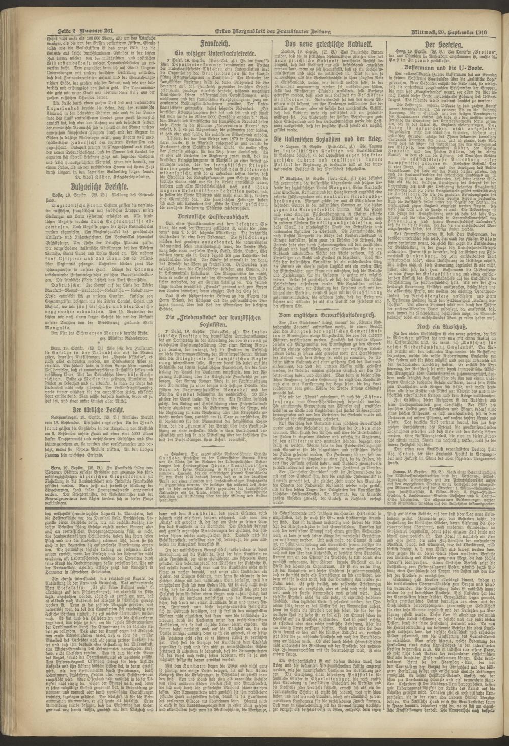 20.09.1916 = Nr. 261. Erstes Morgenblatt