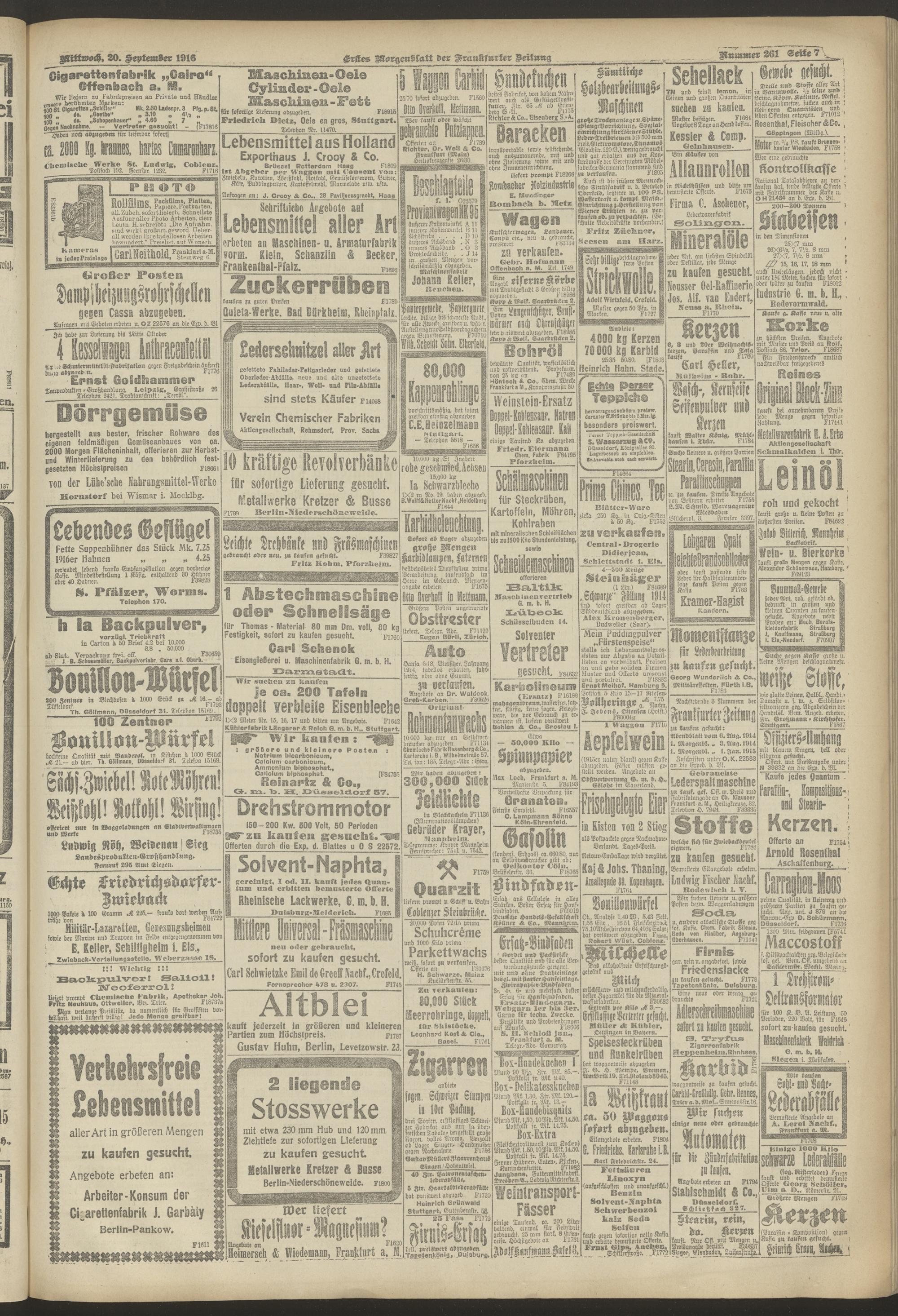 20.09.1916 = Nr. 261. Erstes Morgenblatt