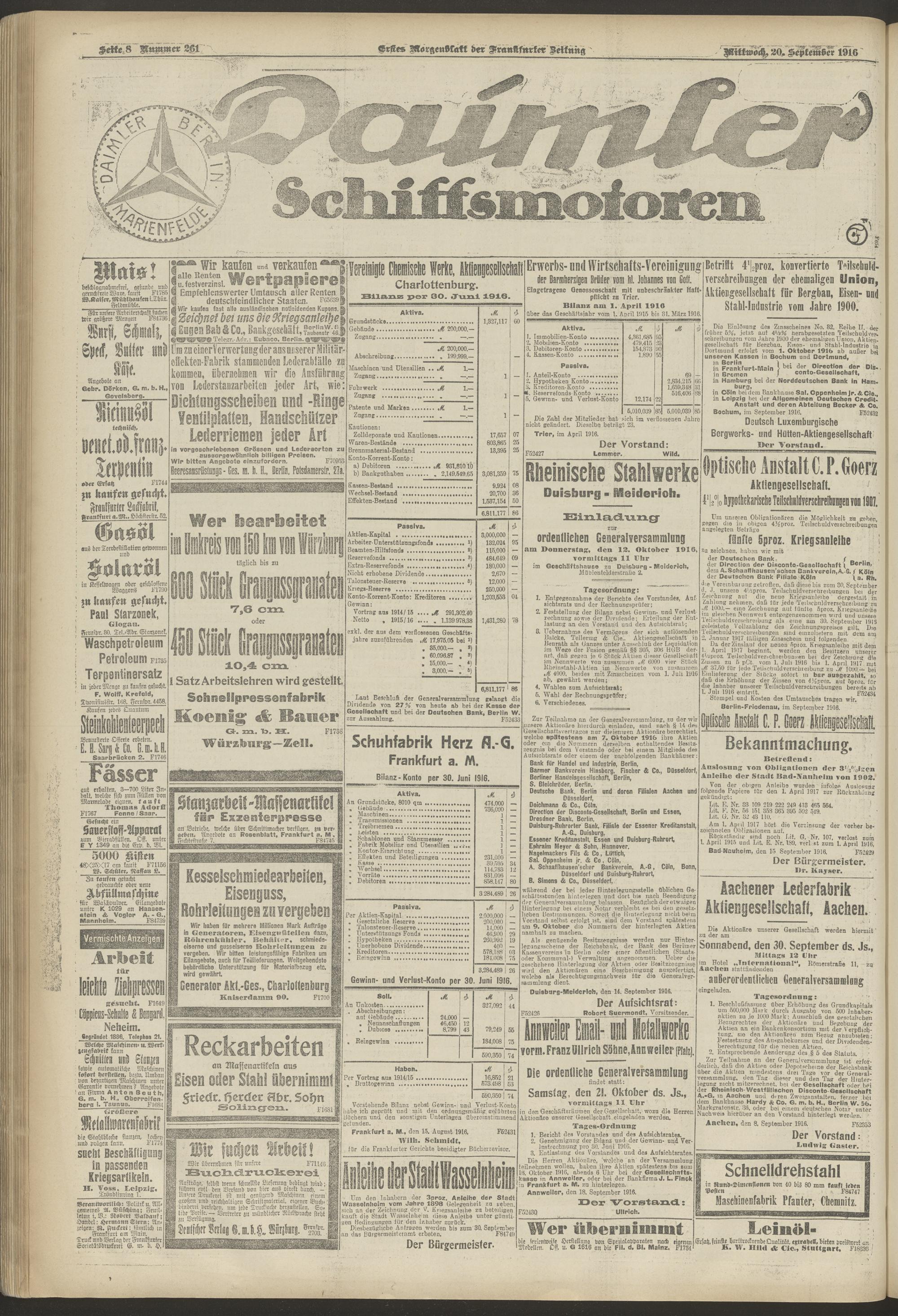 20.09.1916 = Nr. 261. Erstes Morgenblatt