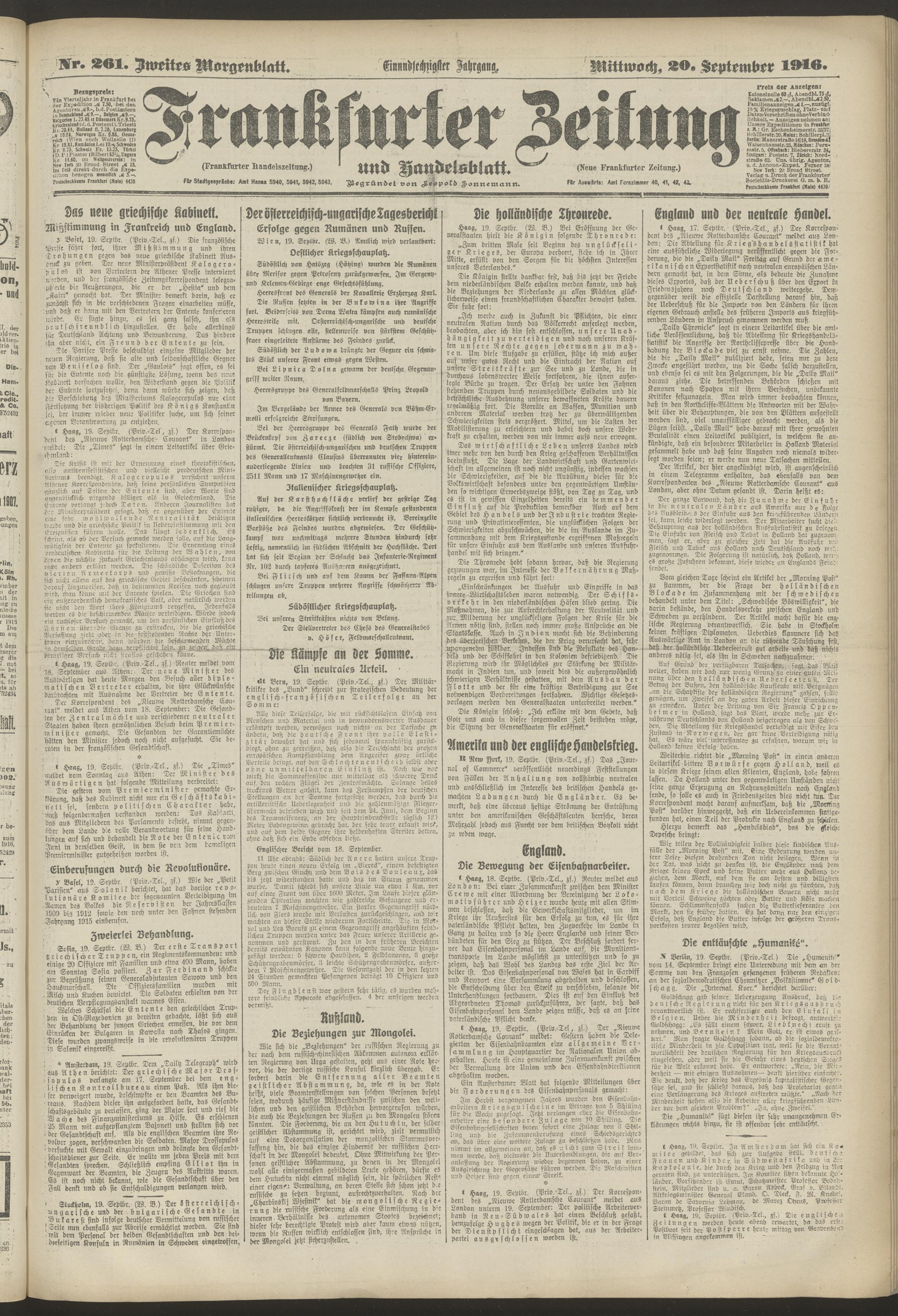 20.09.1916 = Nr. 261. Zweites Morgenblatt