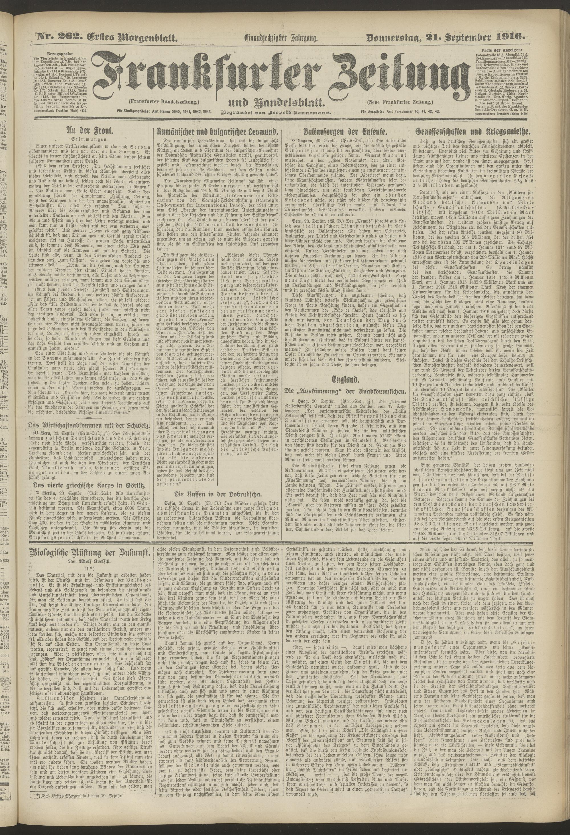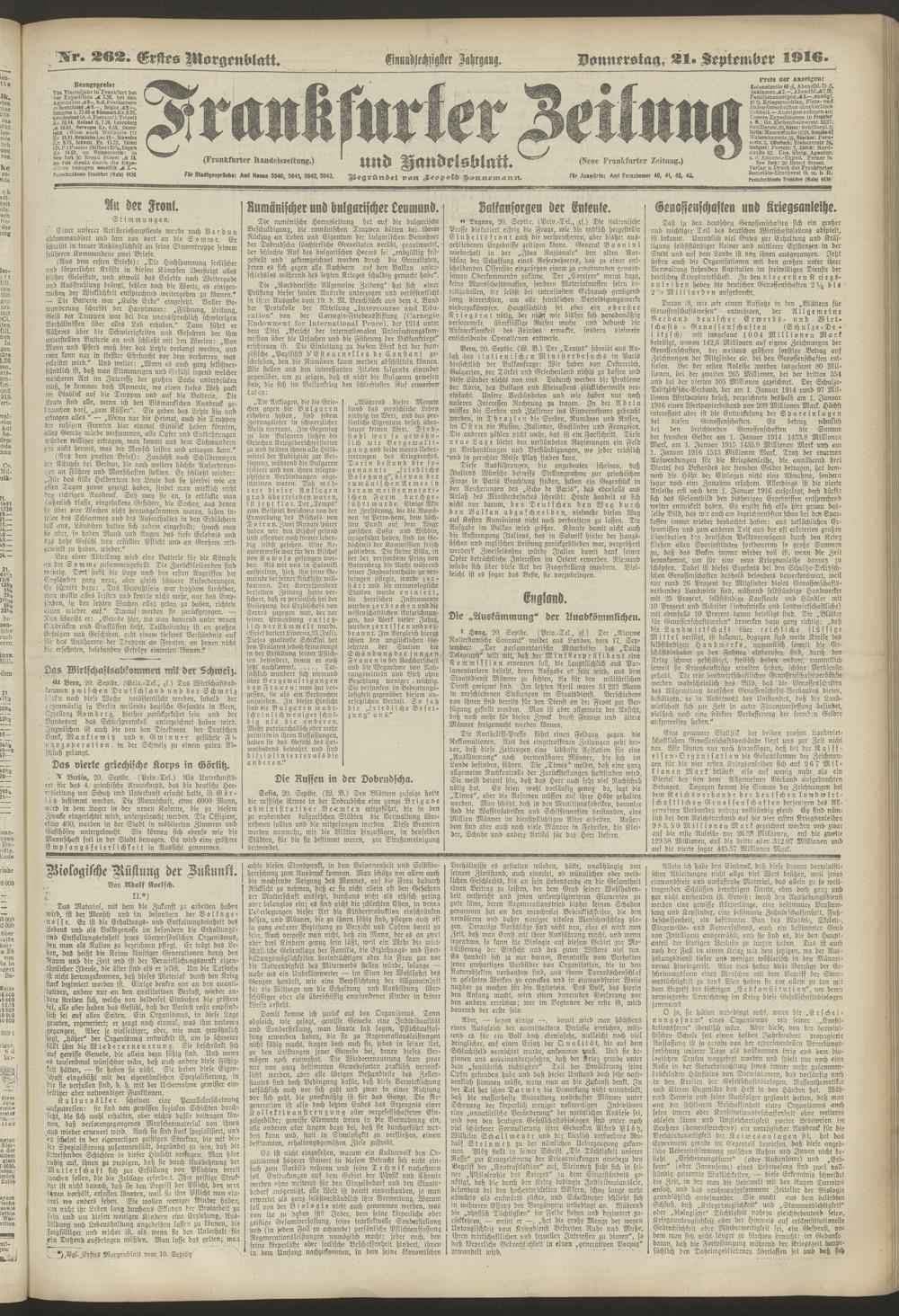 21.09.1916 = Nr. 262. Erstes Morgenblatt