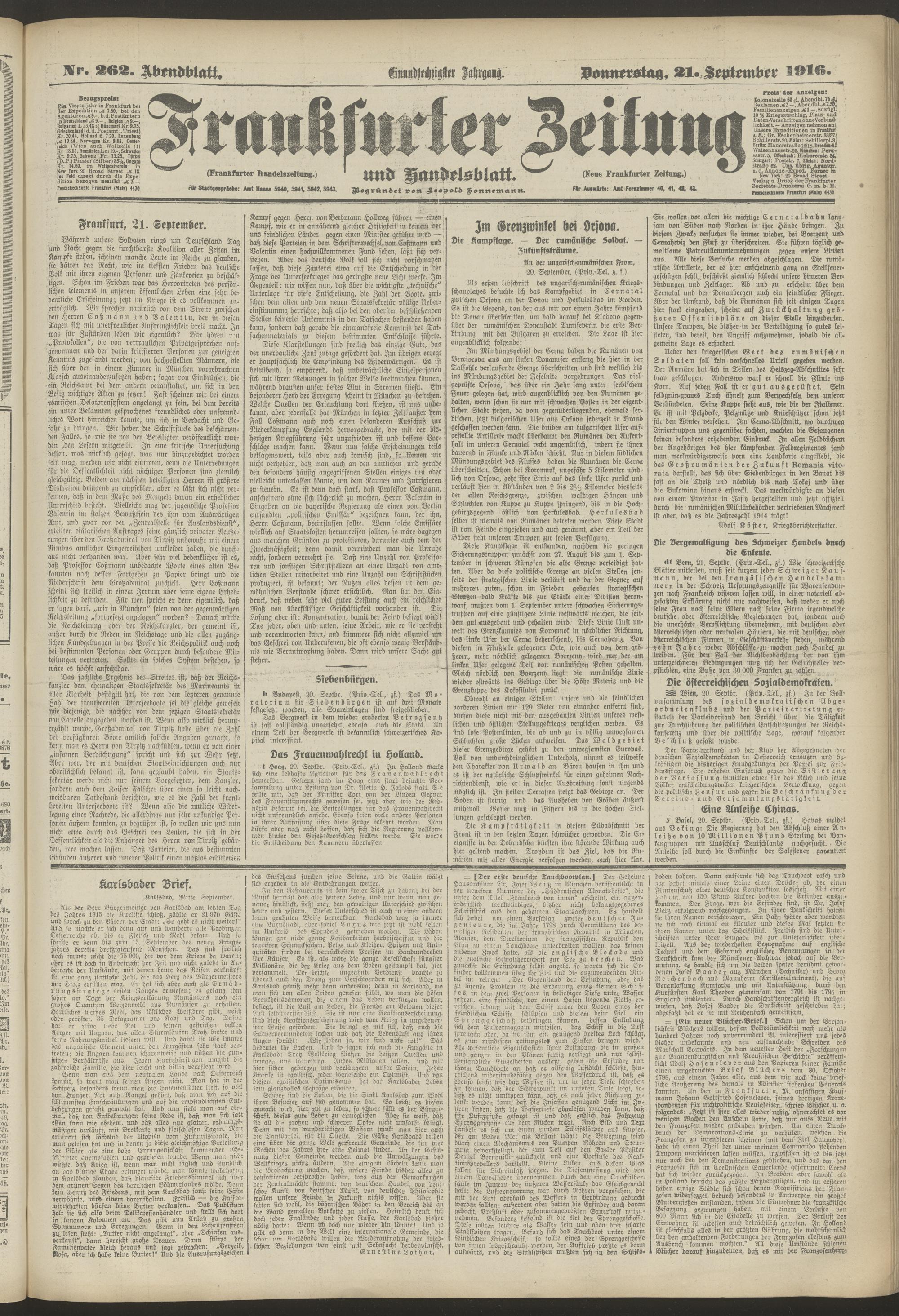 21.09.1916 = Nr. 262. Abendblatt