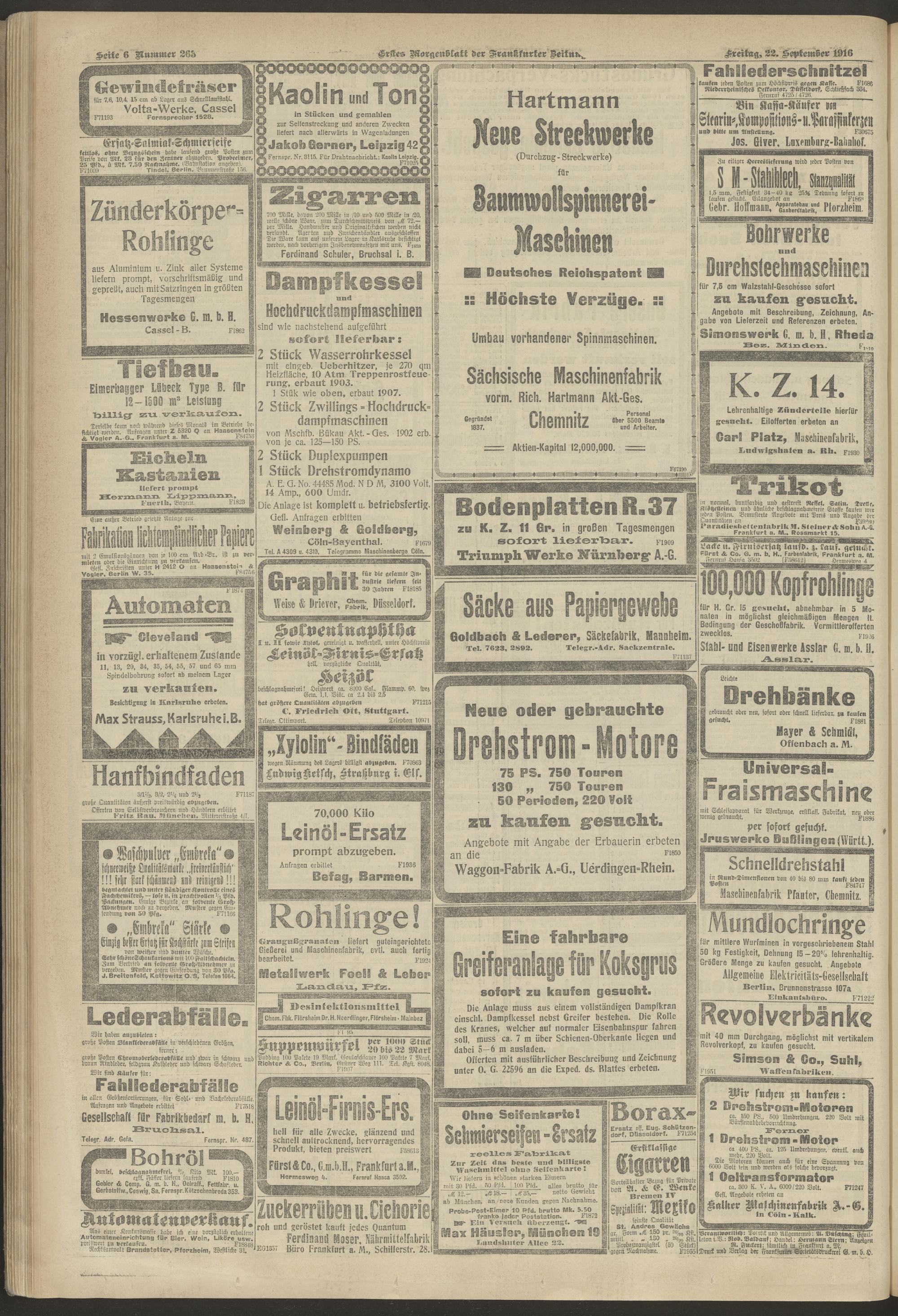 22.09.1916 = Nr. 263. Erstes Morgenblatt