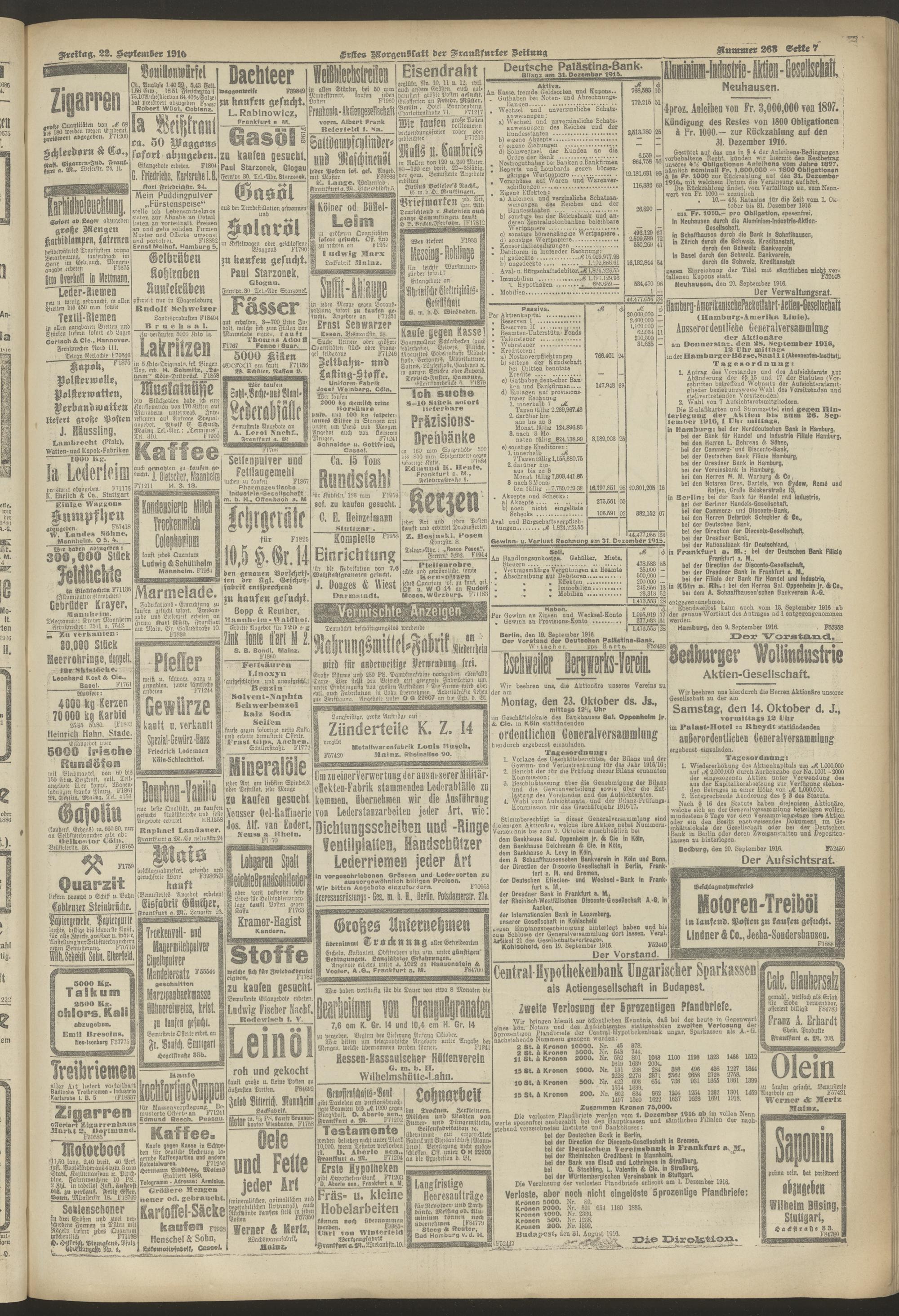 22.09.1916 = Nr. 263. Erstes Morgenblatt