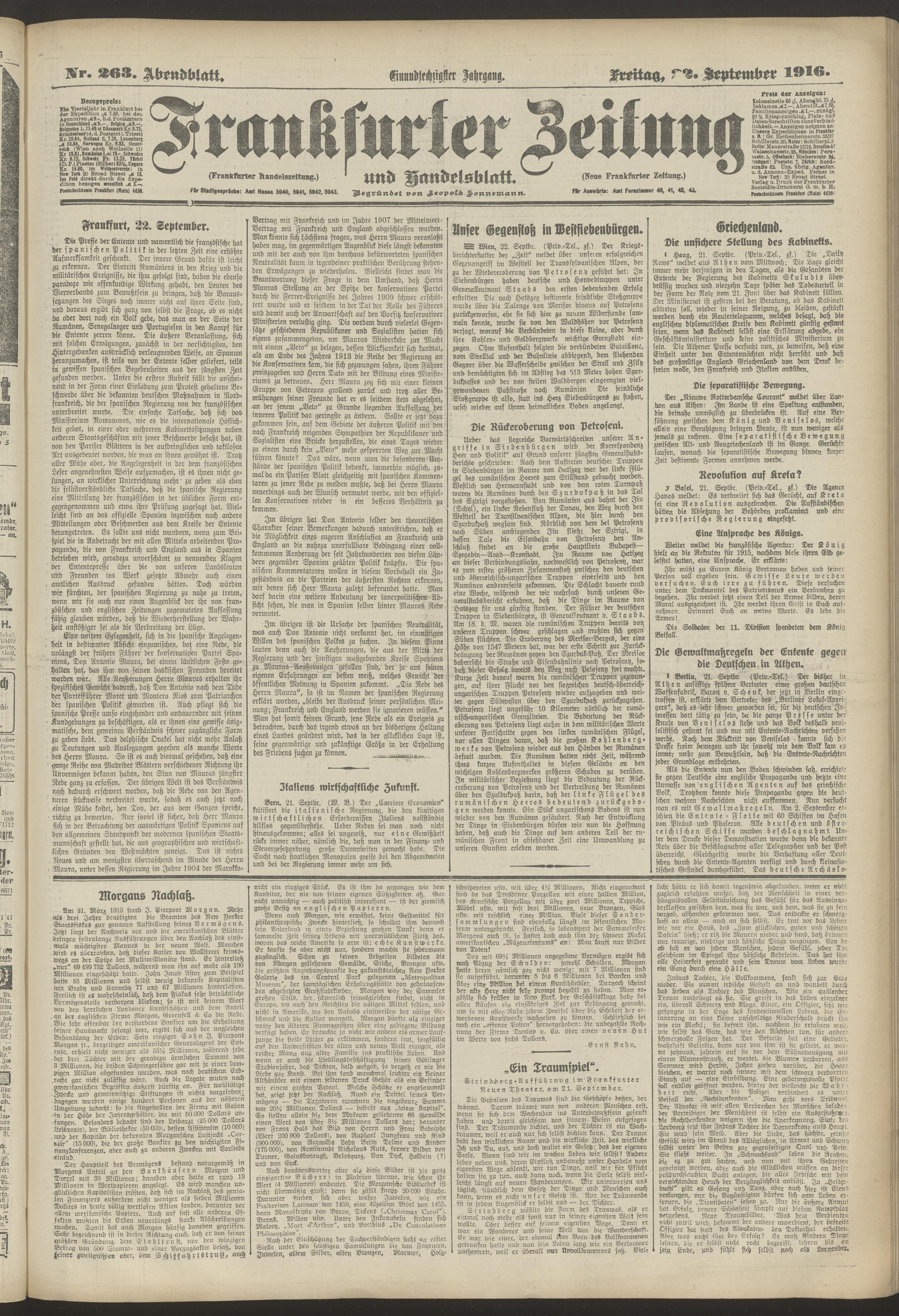 22.09.1916 = Nr. 263. Abendblatt