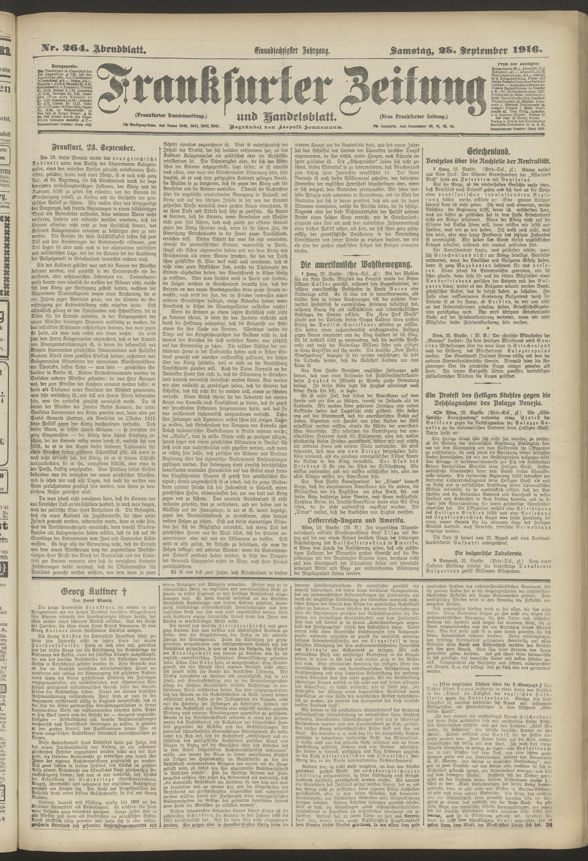 23.09.1916 = Nr. 264. Abendblatt