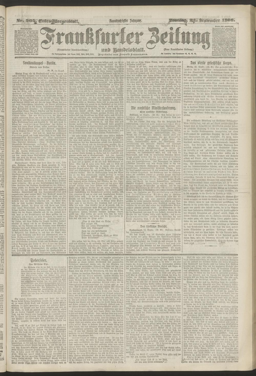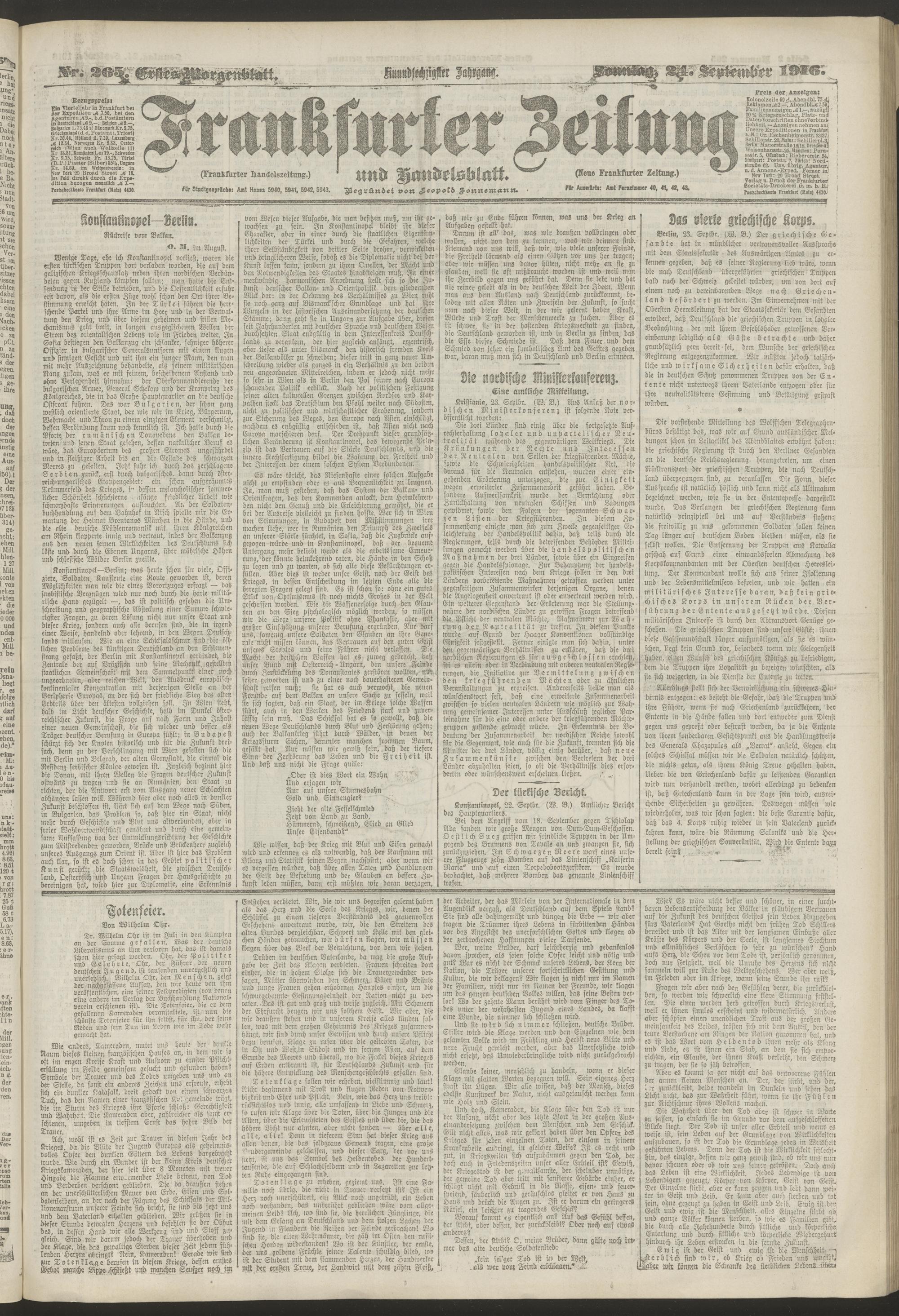 24.09.1916 = Nr. 265. Erstes Morgenblatt