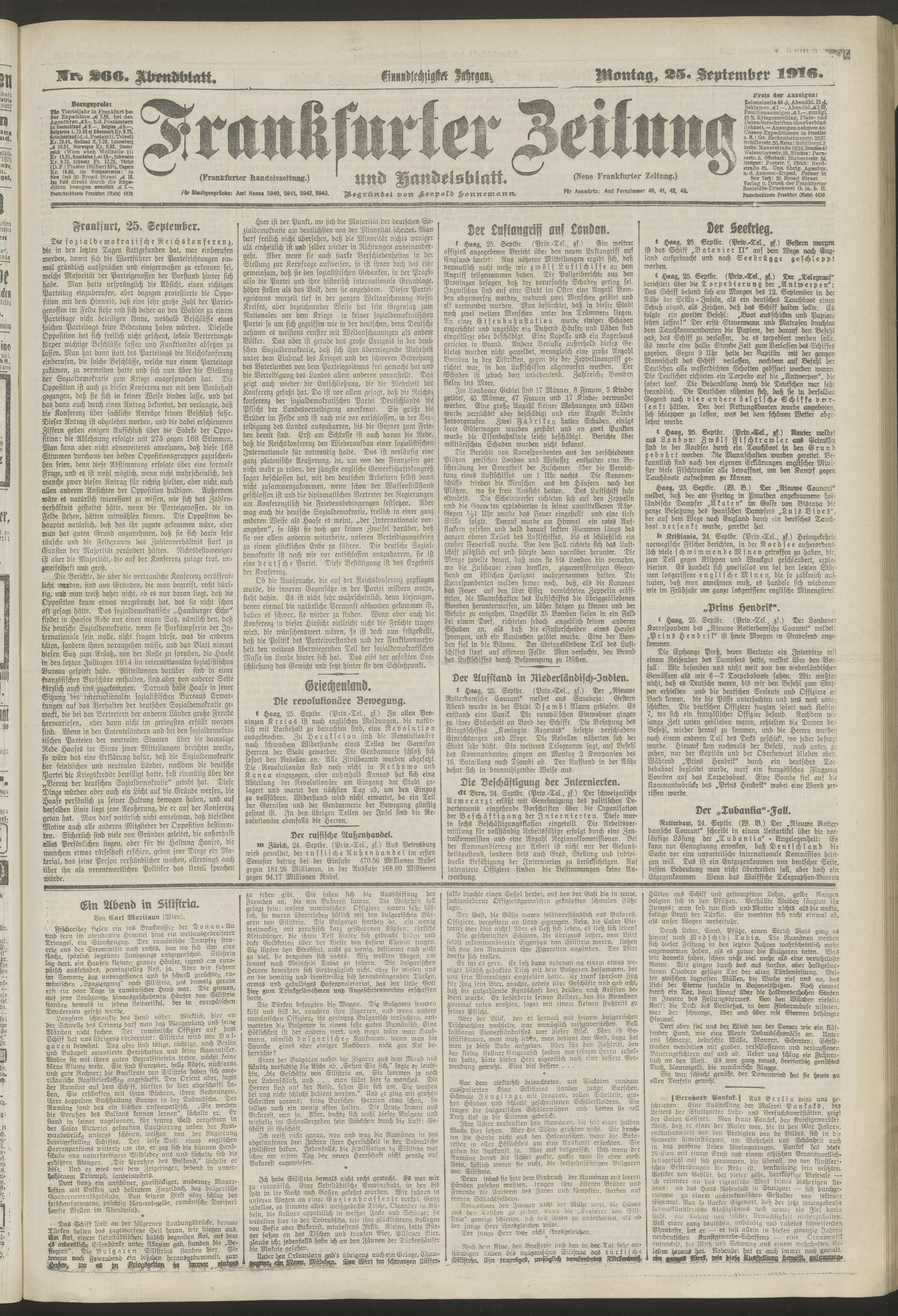 25.09.1916 = Nr. 266. Abendblatt