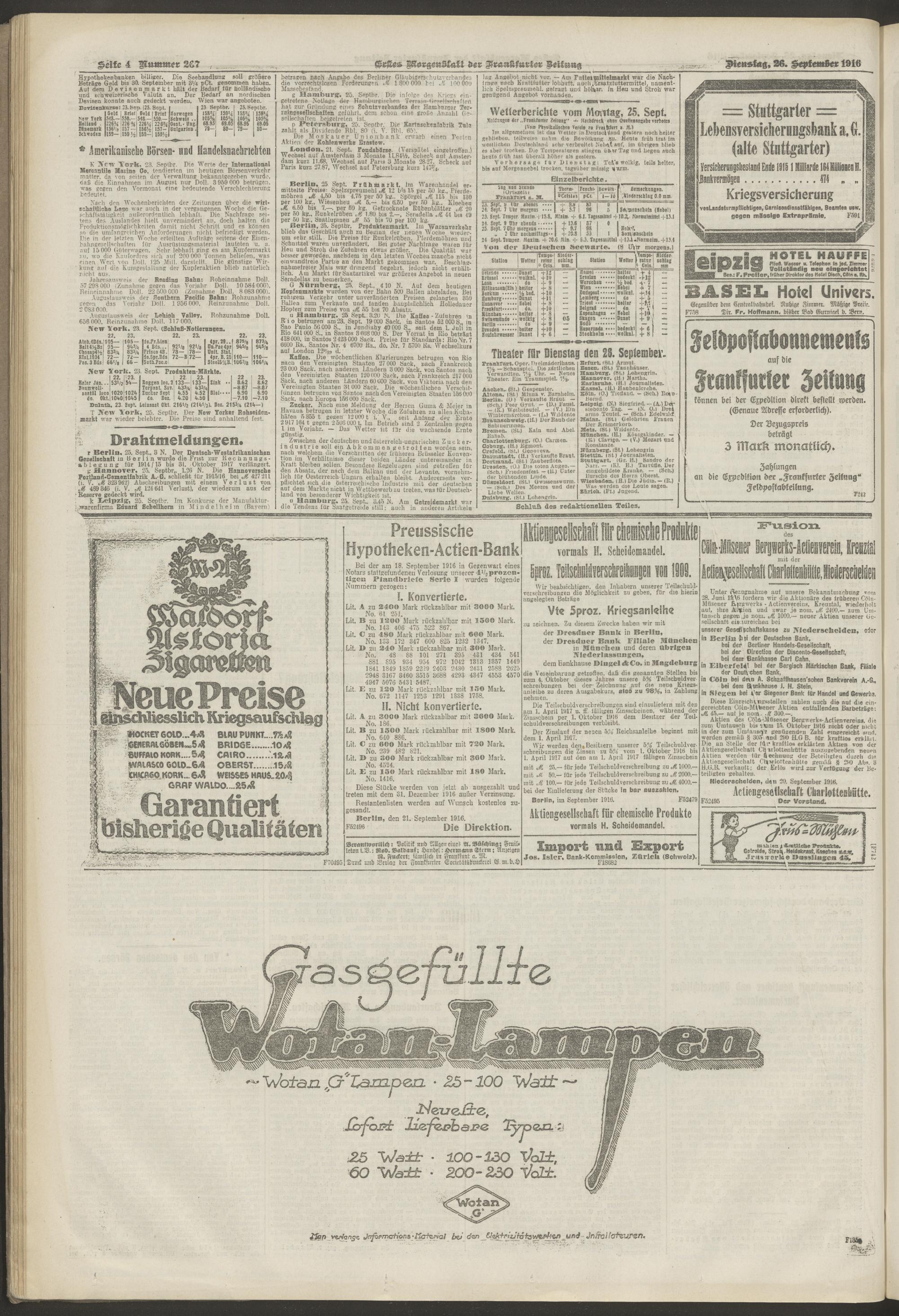 26.09.1916 = Nr. 267. Erstes Morgenblatt