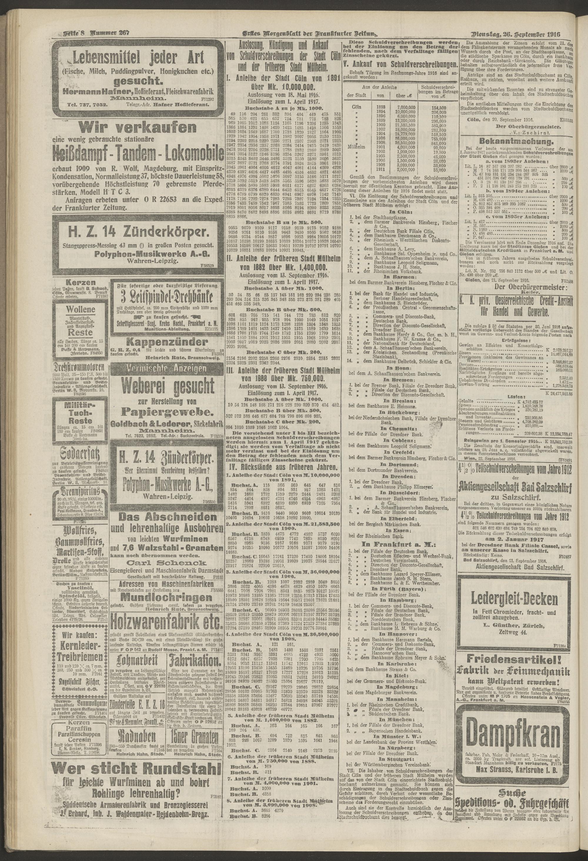 26.09.1916 = Nr. 267. Erstes Morgenblatt