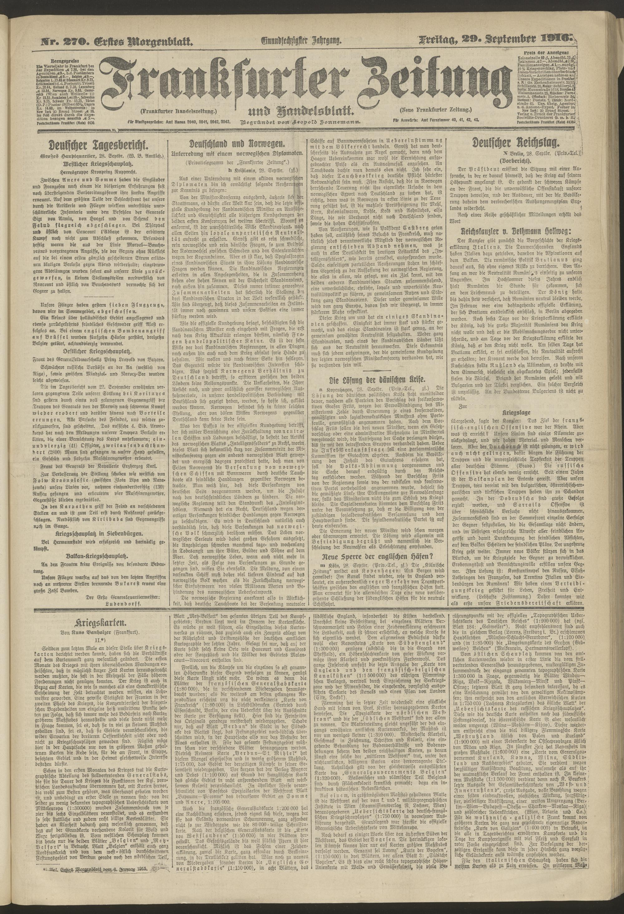 29.09.1916 = Nr. 270. Erstes Morgenblatt
