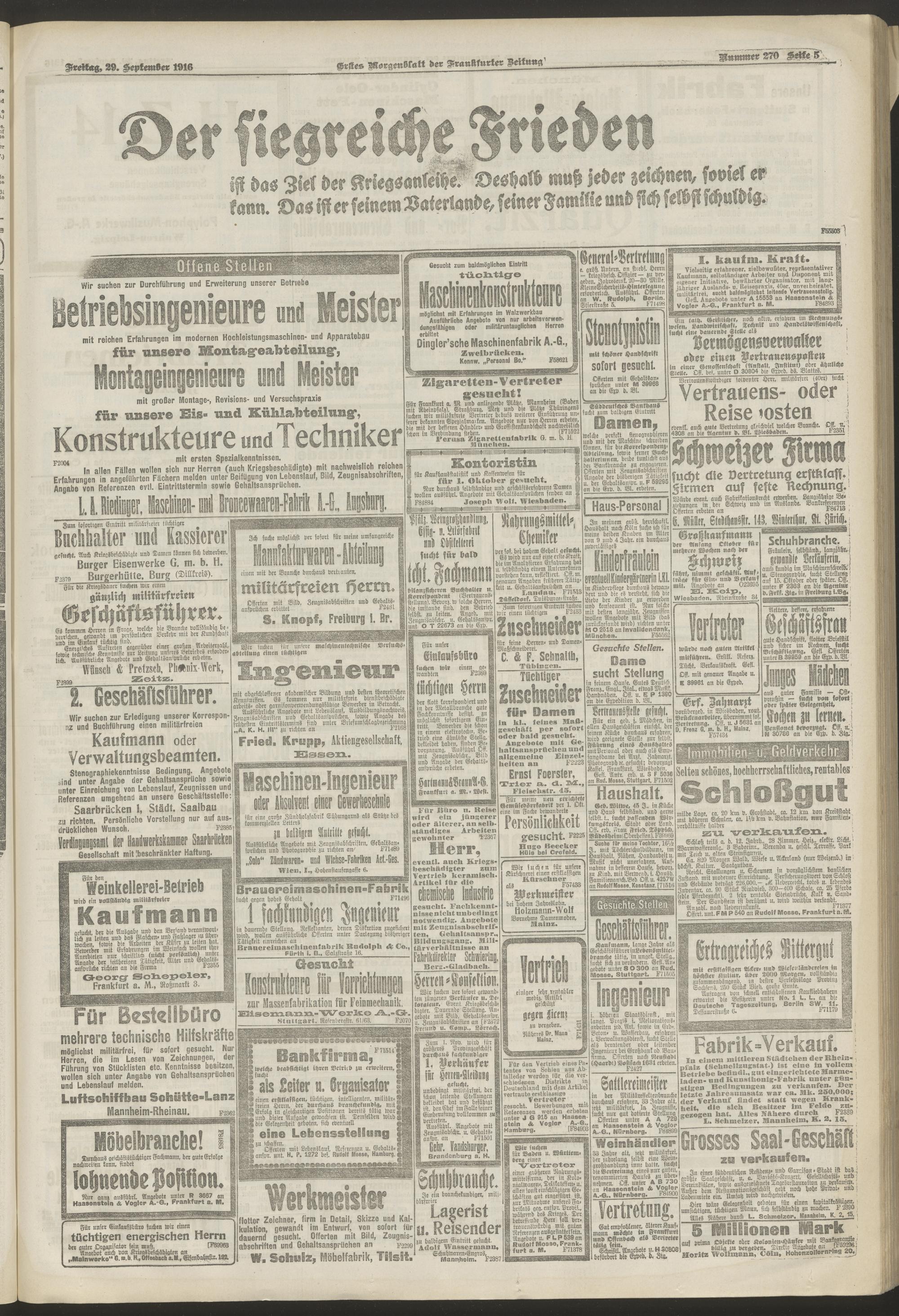 29.09.1916 = Nr. 270. Erstes Morgenblatt