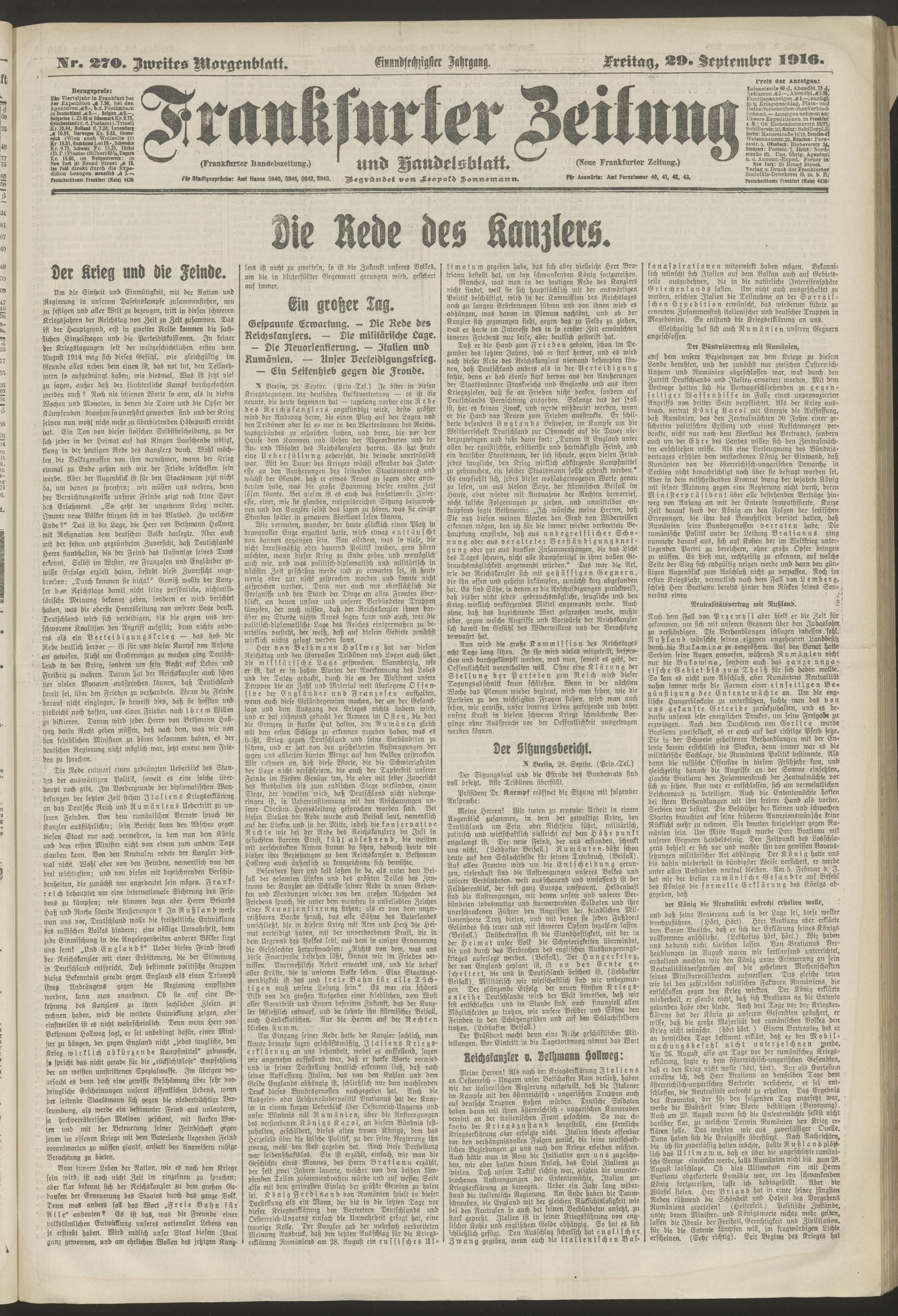 29.09.1916 = Nr. 270. Zweites Morgenblatt