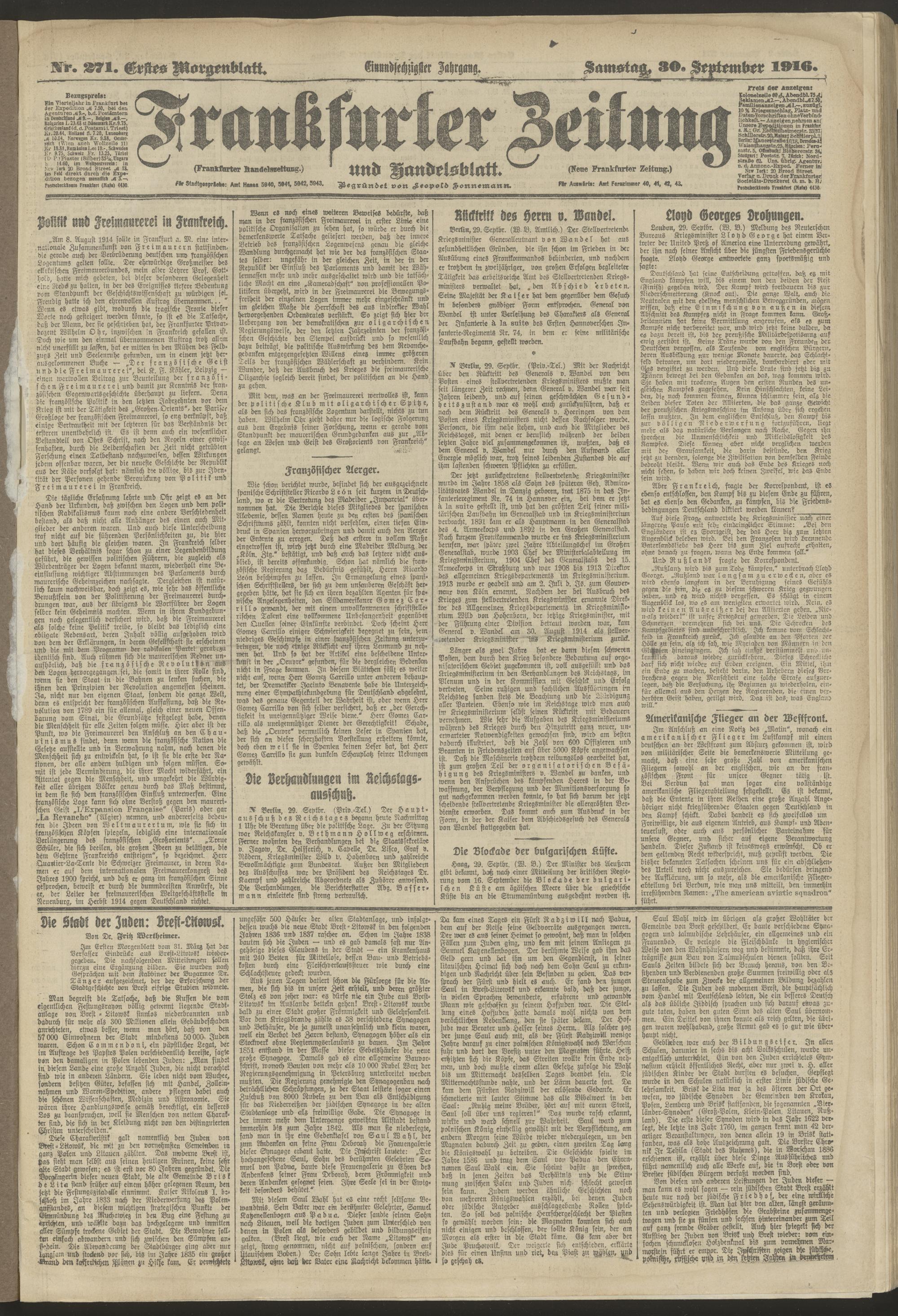 30.09.1916 = Nr. 271. Erstes Morgenblatt
