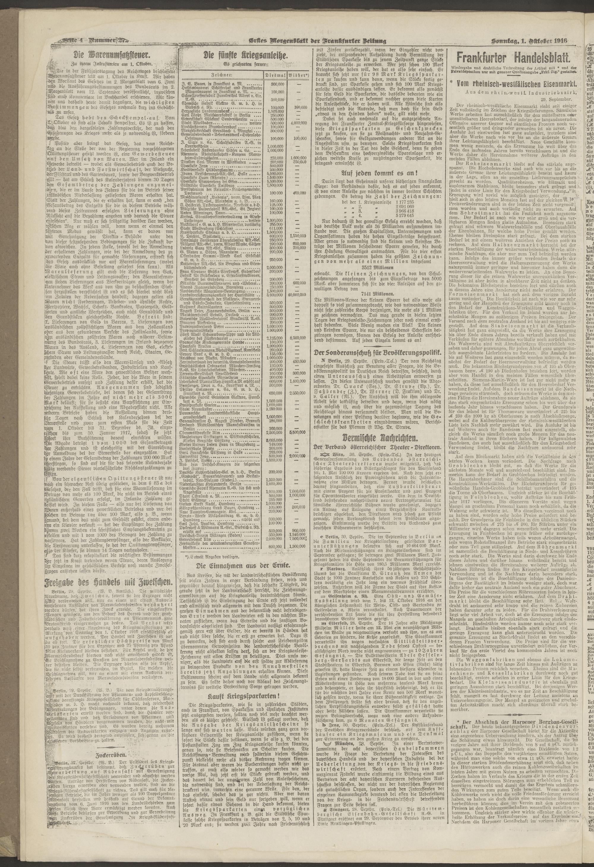 01.10.1916 = Nr. 272. Erstes Morgenblatt