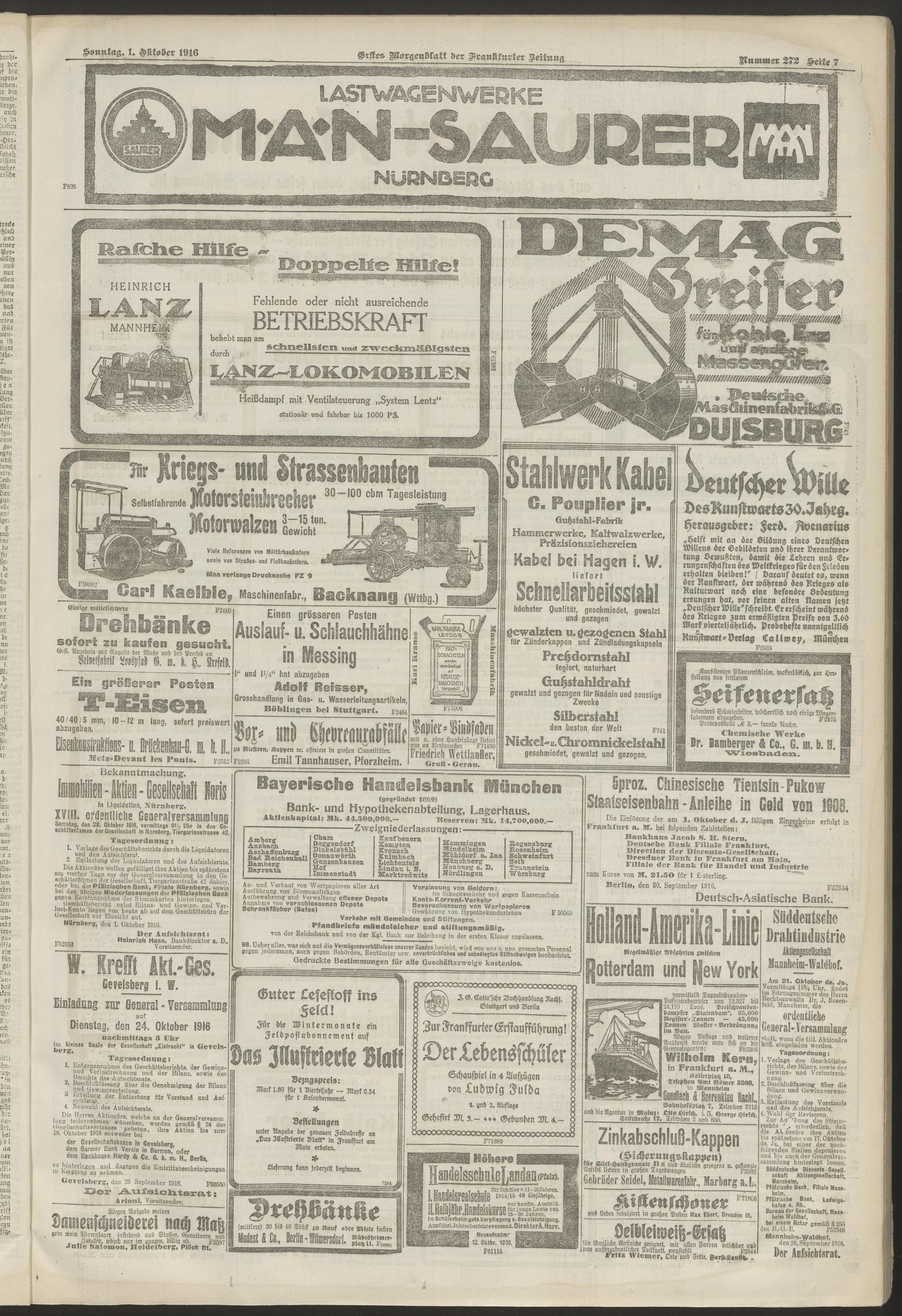 01.10.1916 = Nr. 272. Erstes Morgenblatt