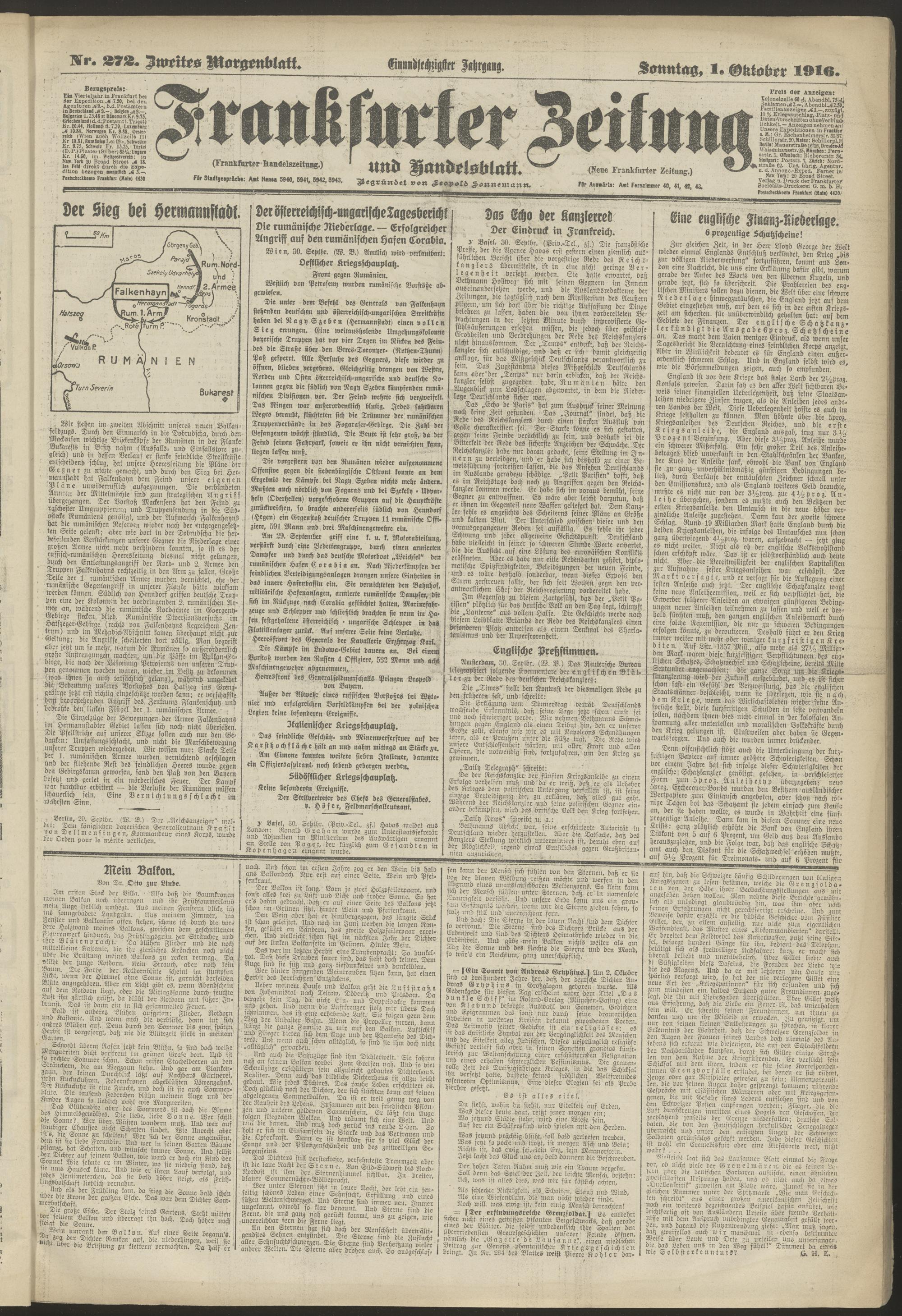 01.10.1916 = Nr. 272. Zweites Morgenblatt