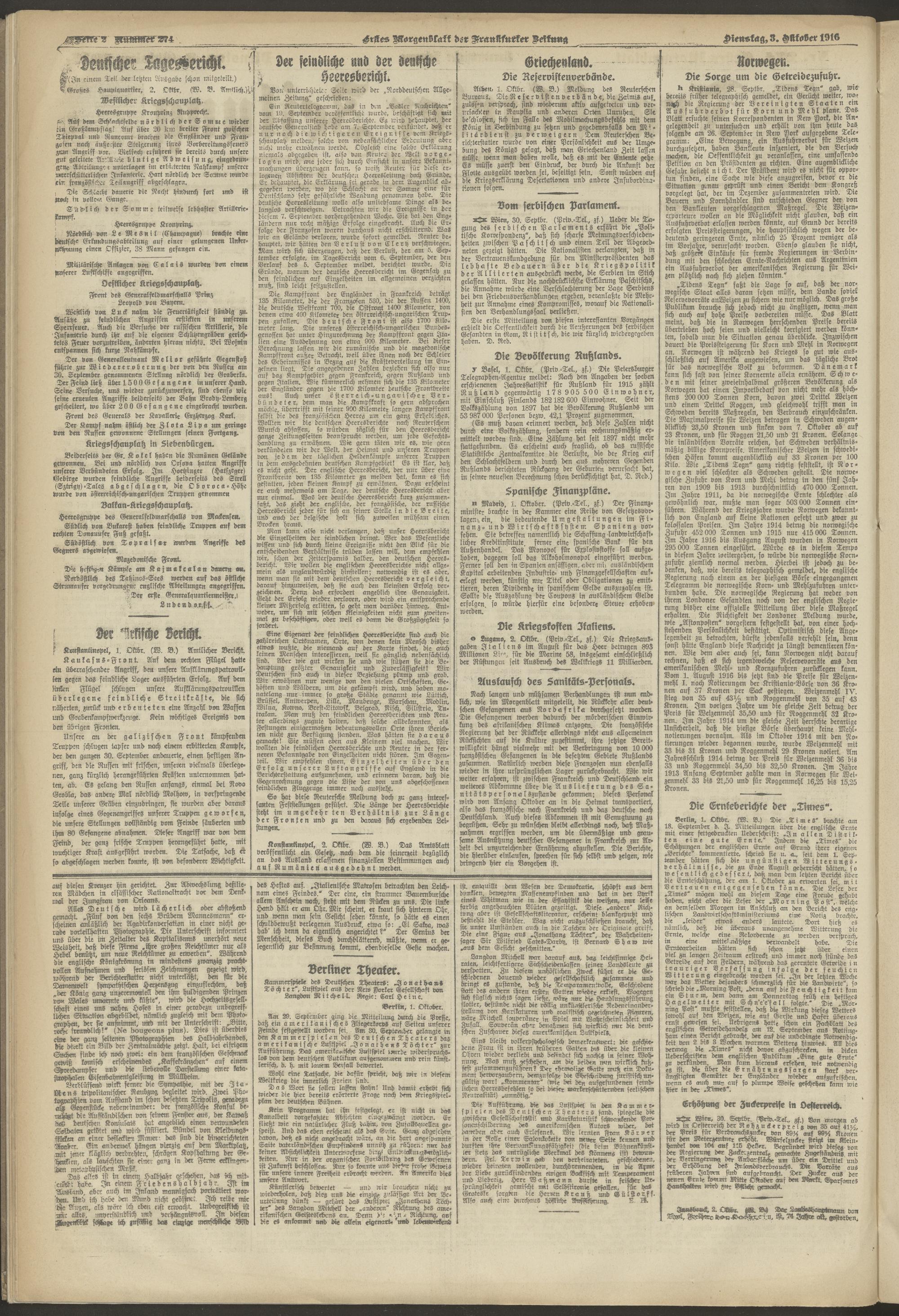 03.10.1916 = Nr. 274. Erstes Morgenblatt