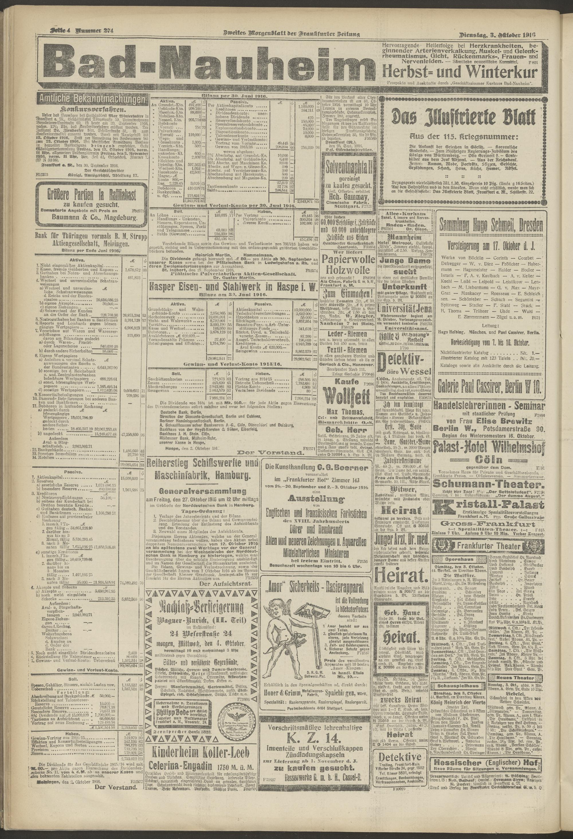 03.10.1916 = Nr. 274. Zweites Morgenblatt