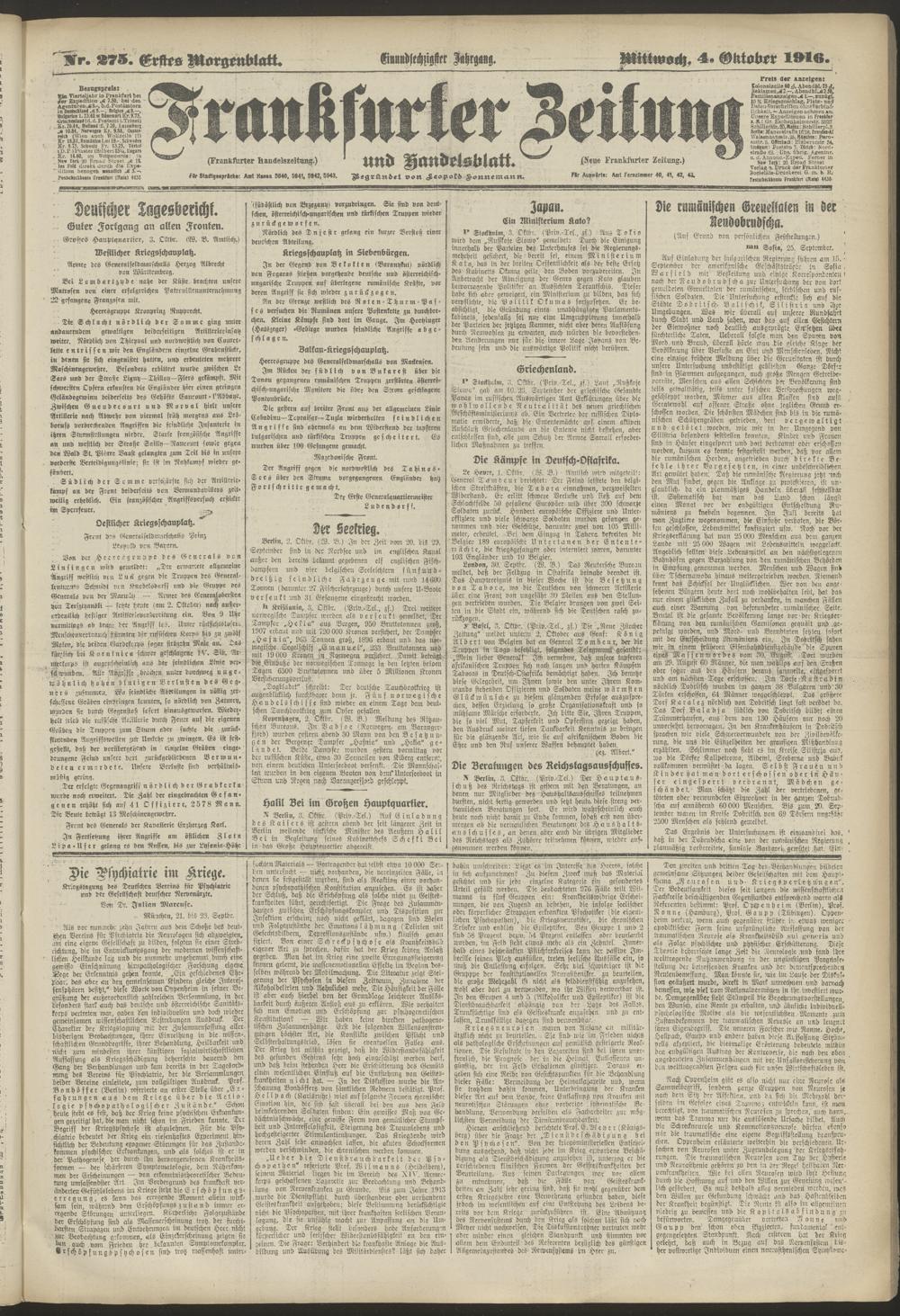 04.10.1916 = Nr. 275. Erstes Morgenblatt