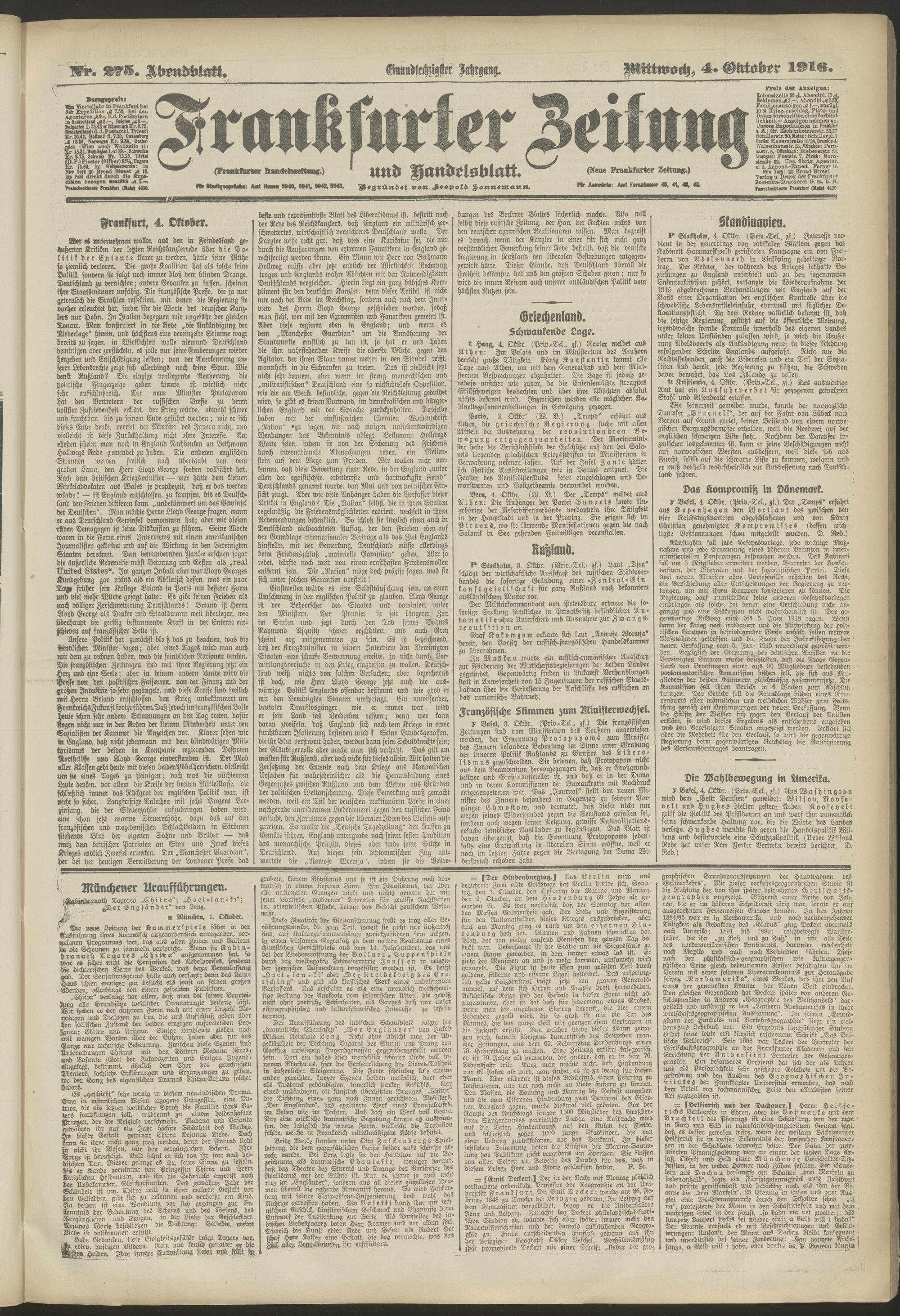 04.10.1916 = Nr. 275. Abendblatt