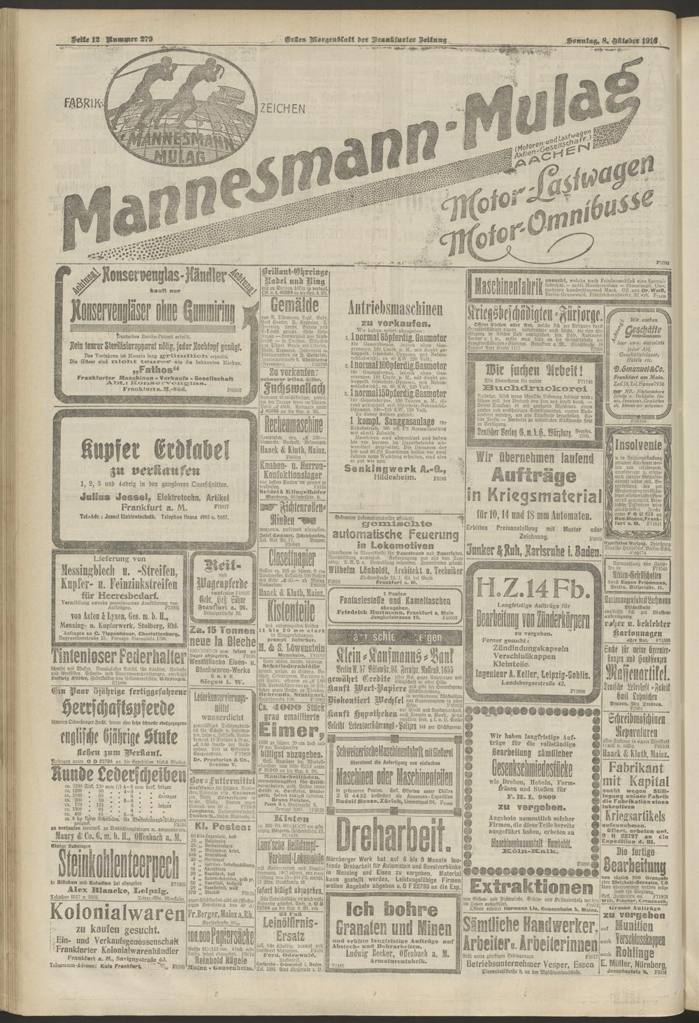 08.10.1916 = Nr. 279. Erstes Morgenblatt