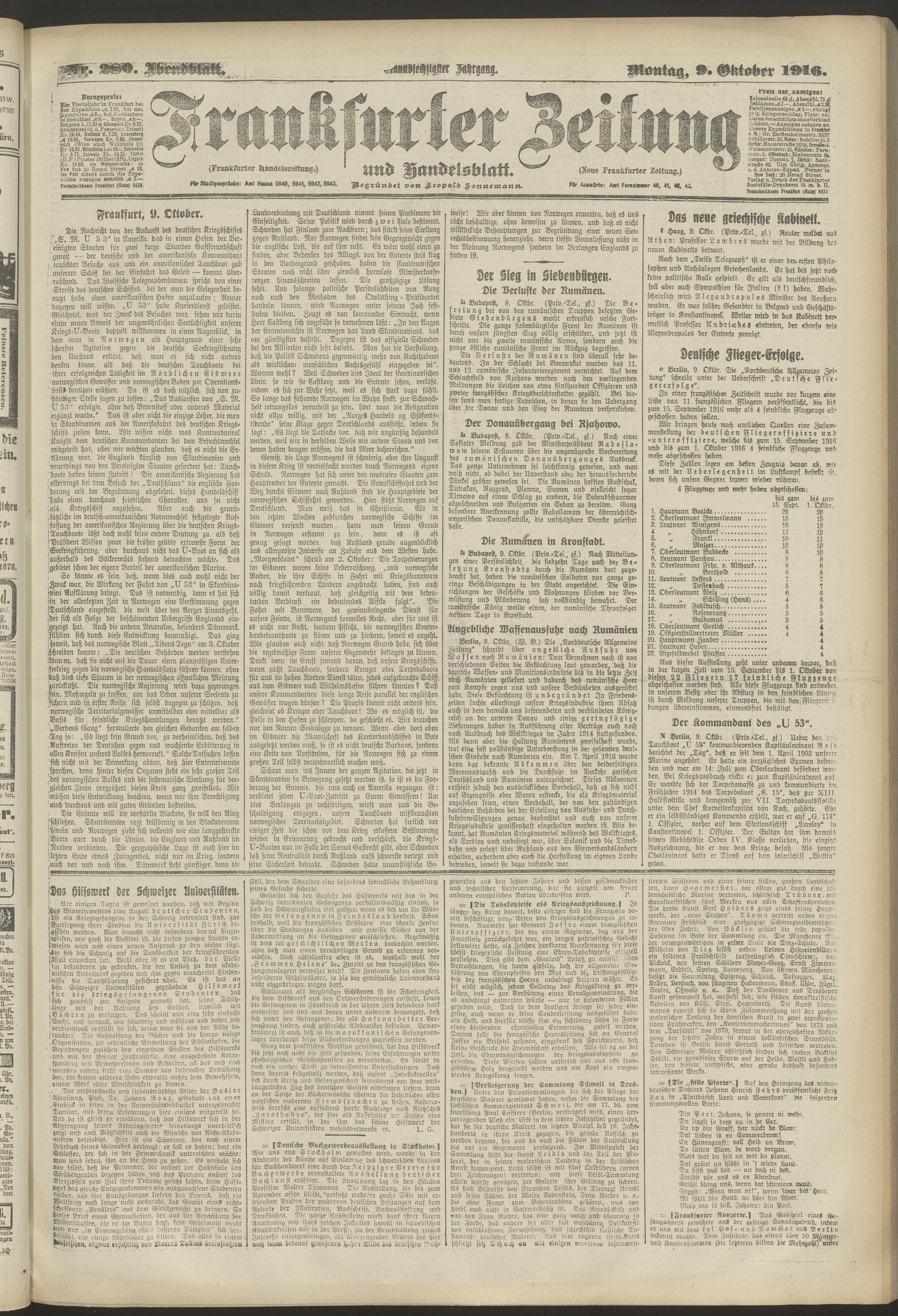 09.10.1916 = Nr. 280. Abendblatt