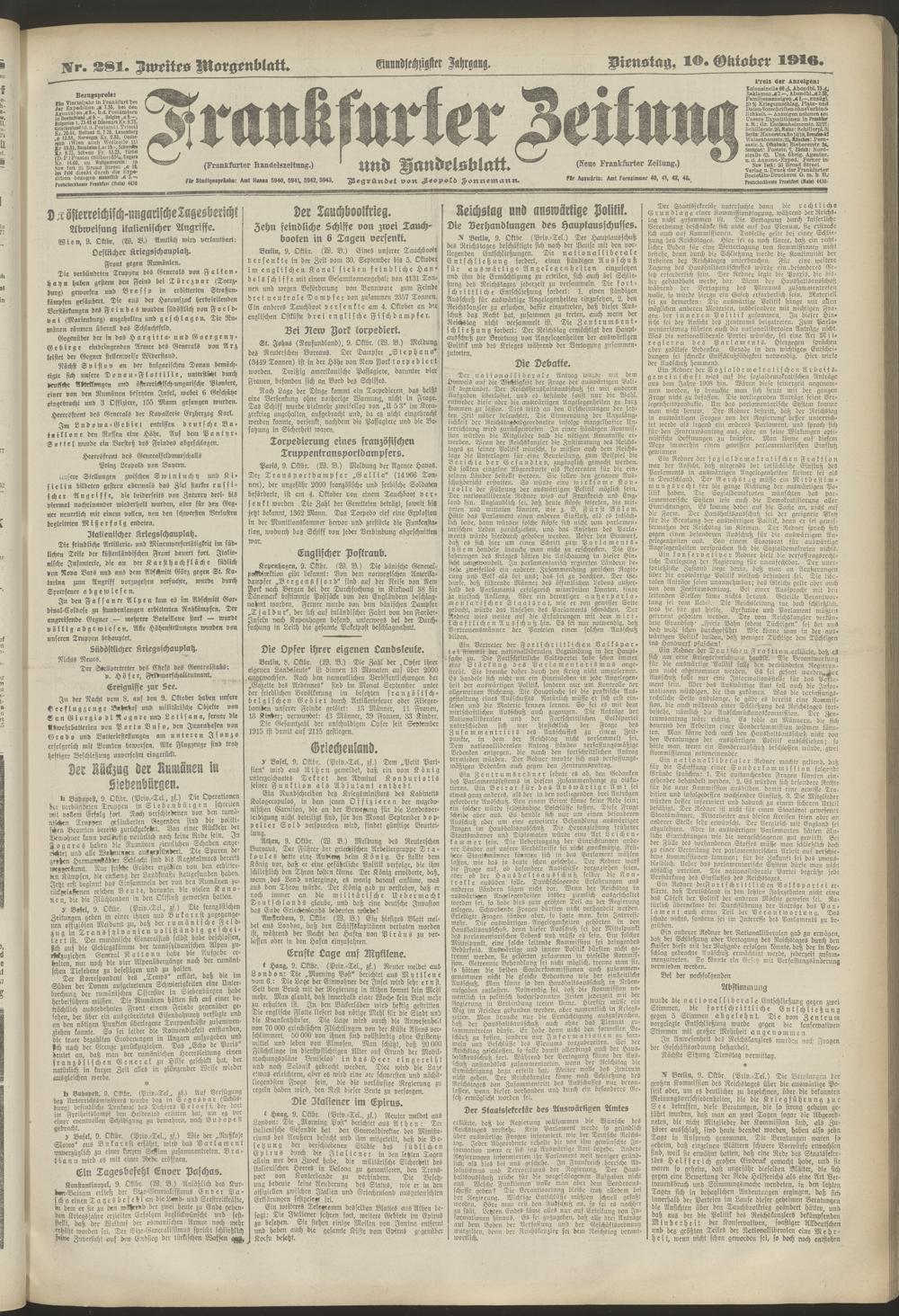10.10.1916 = Nr. 281. Zweites Morgenblatt