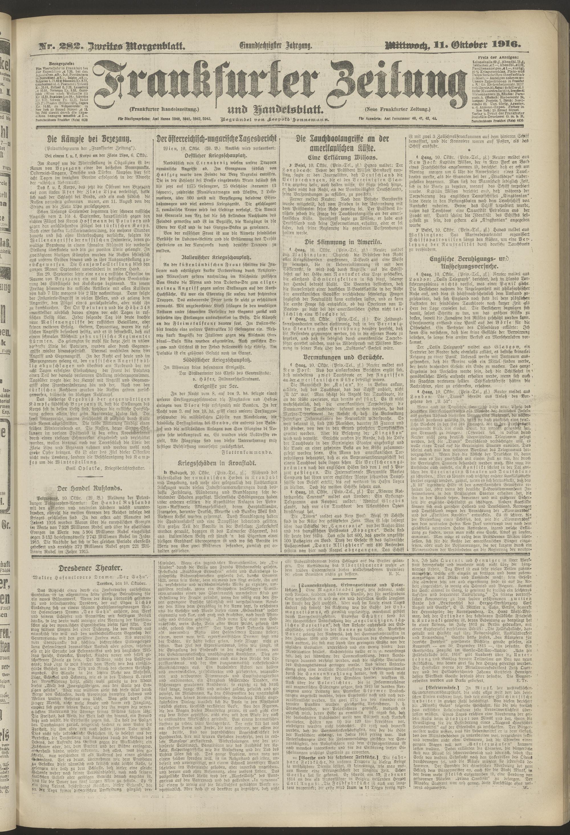 11.10.1916 = Nr. 282. Zweites Morgenblatt