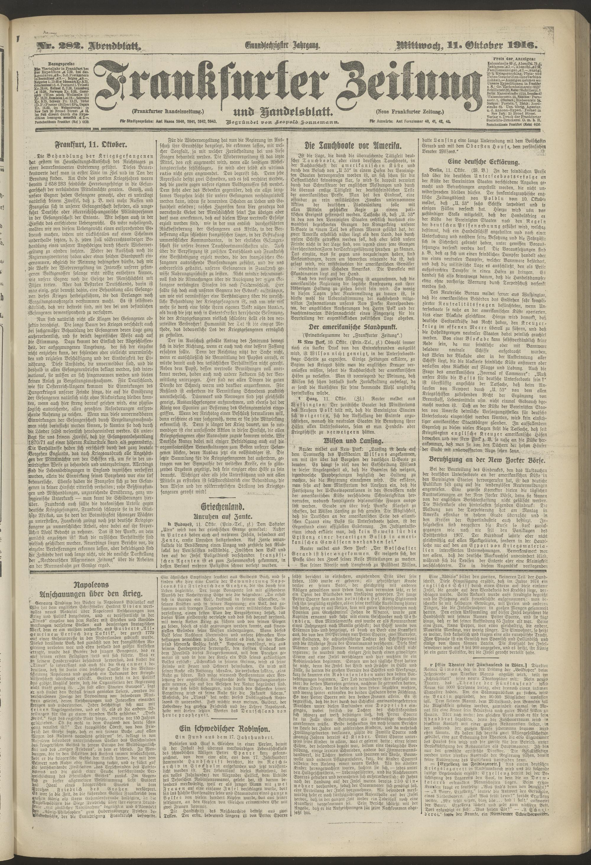 11.10.1916 = Nr. 282. Abendblatt