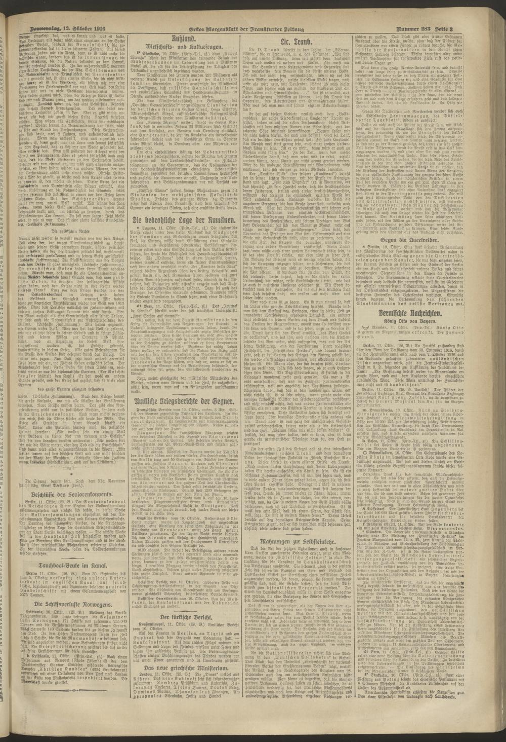 12.10.1916 = Nr. 283. Erstes Morgenblatt