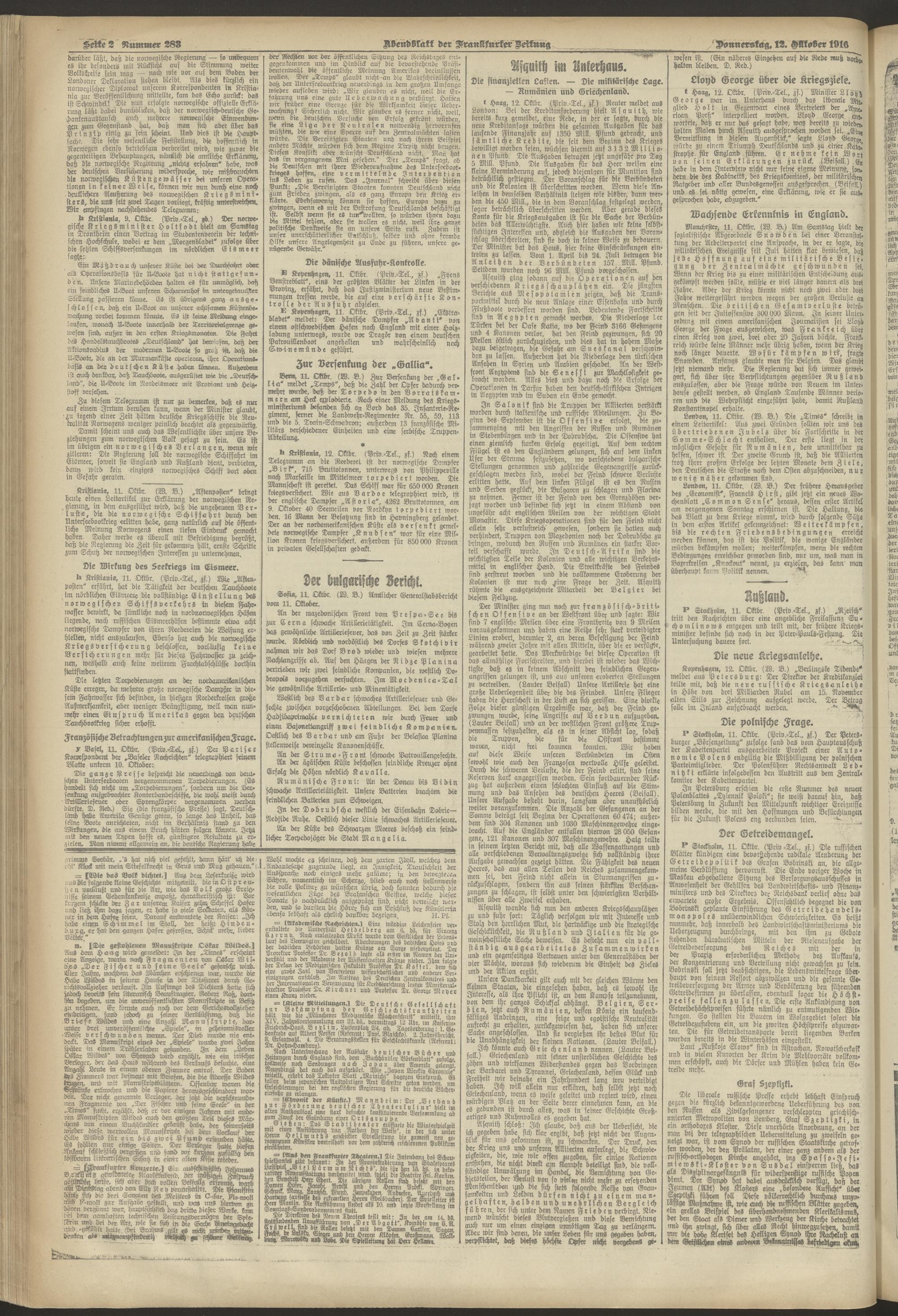 12.10.1916 = Nr. 283. Abendblatt