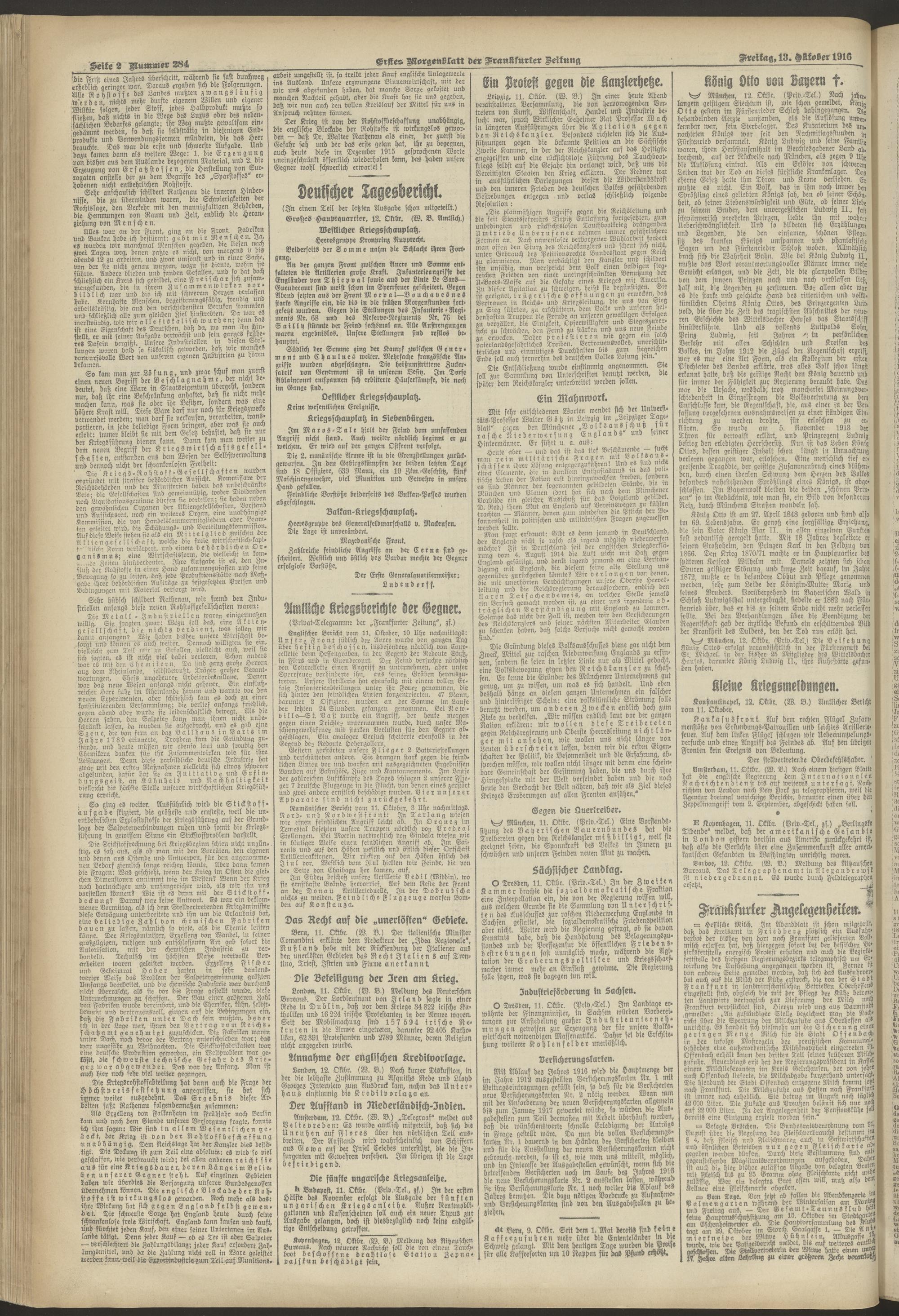 13.10.1916 = Nr. 284. Erstes Morgenblatt