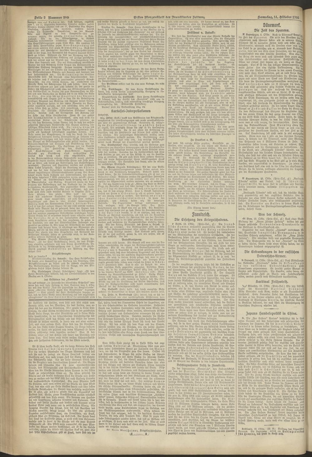 14.10.1916 = Nr. 285. Erstes Morgenblatt