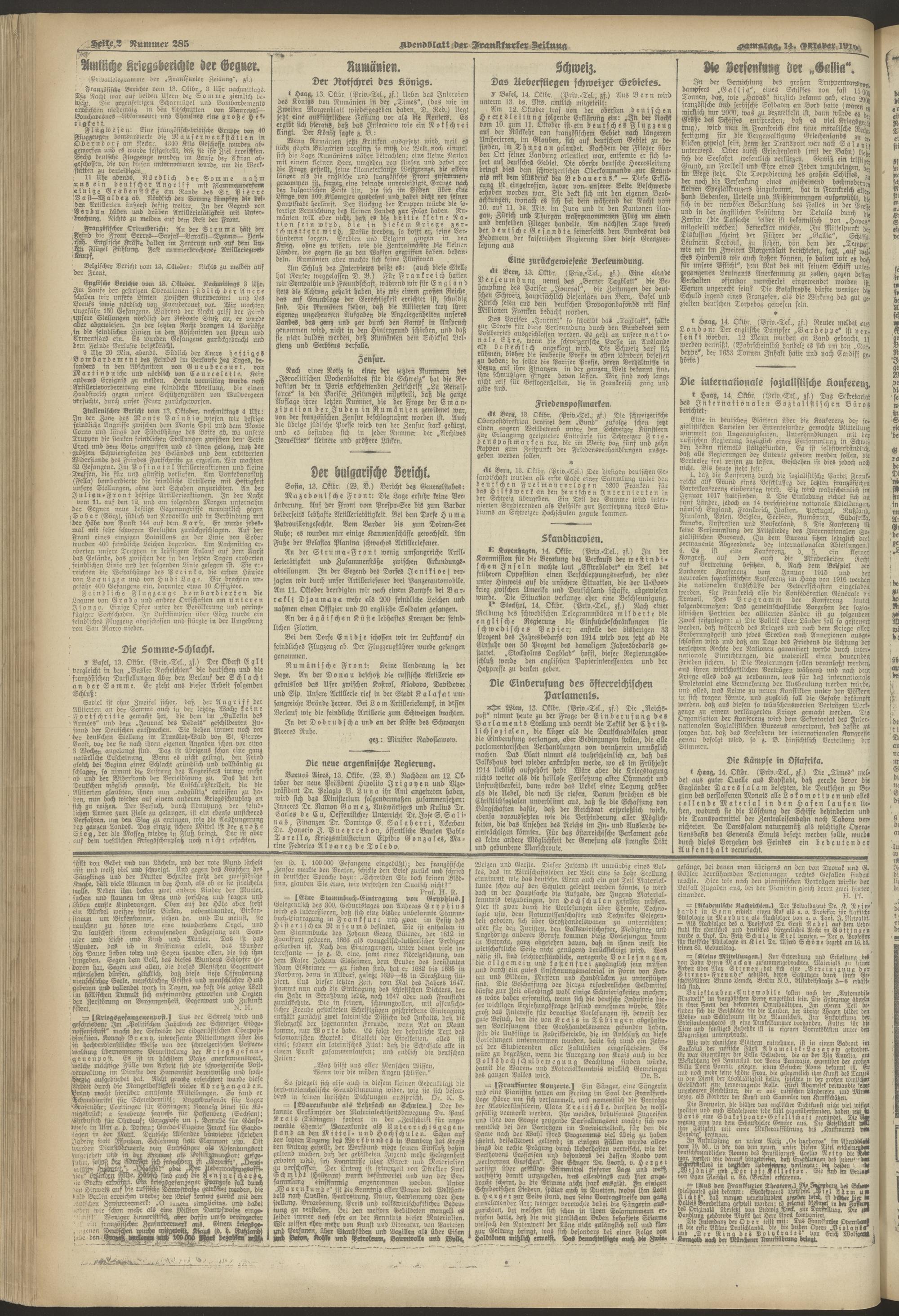 14.10.1916 = Nr. 285. Abendblatt