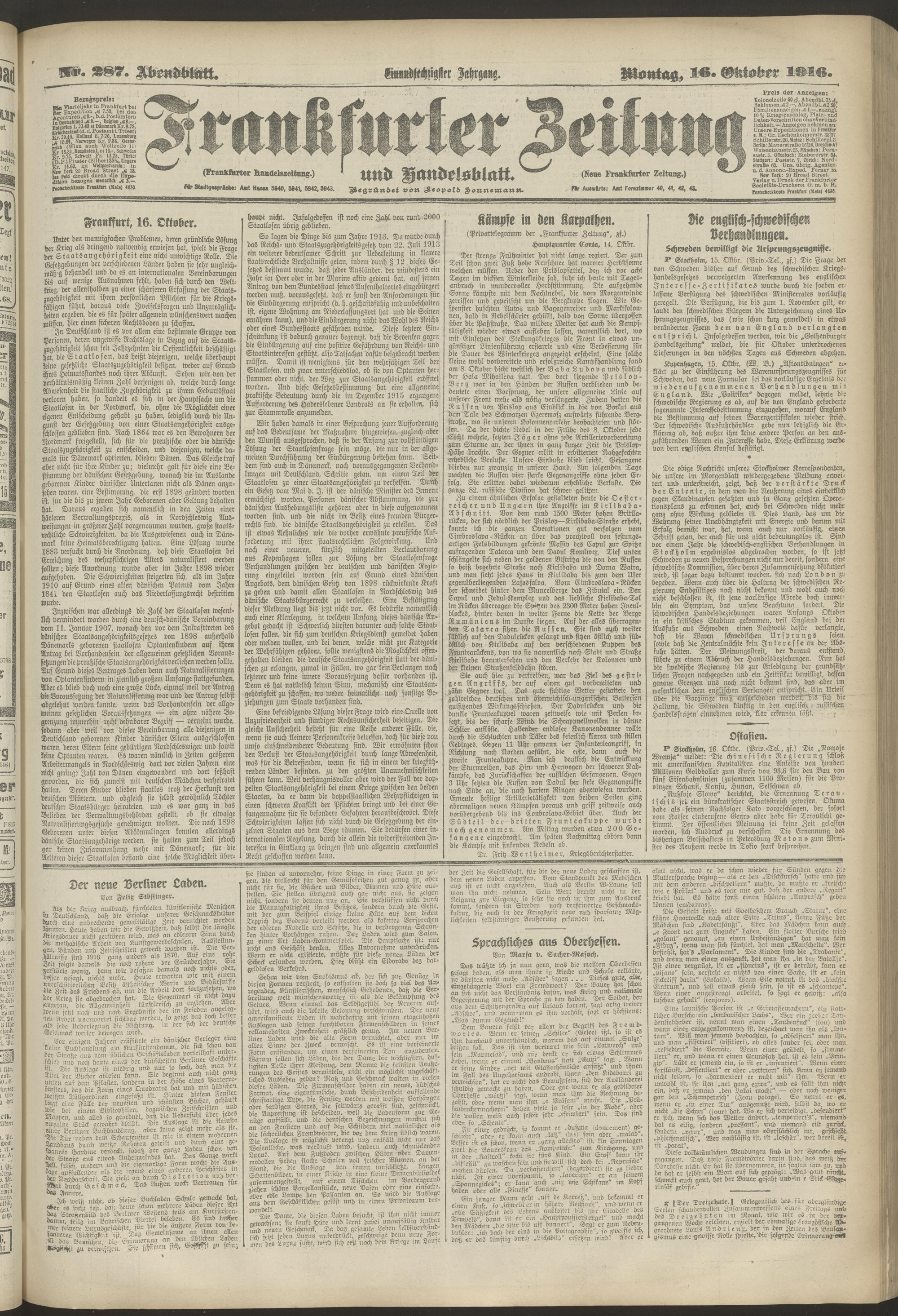16.10.1916 = Nr. 287. Abendblatt