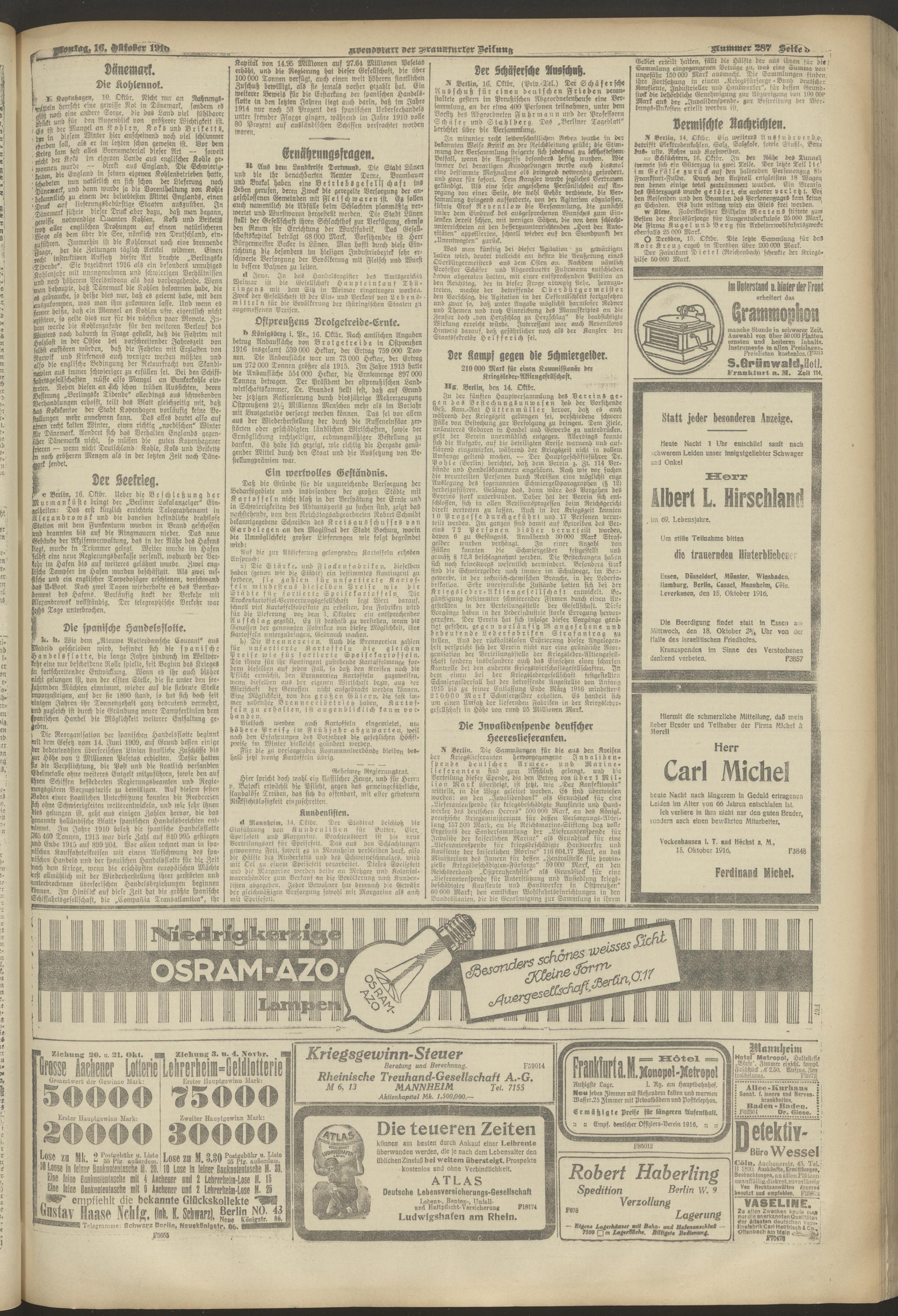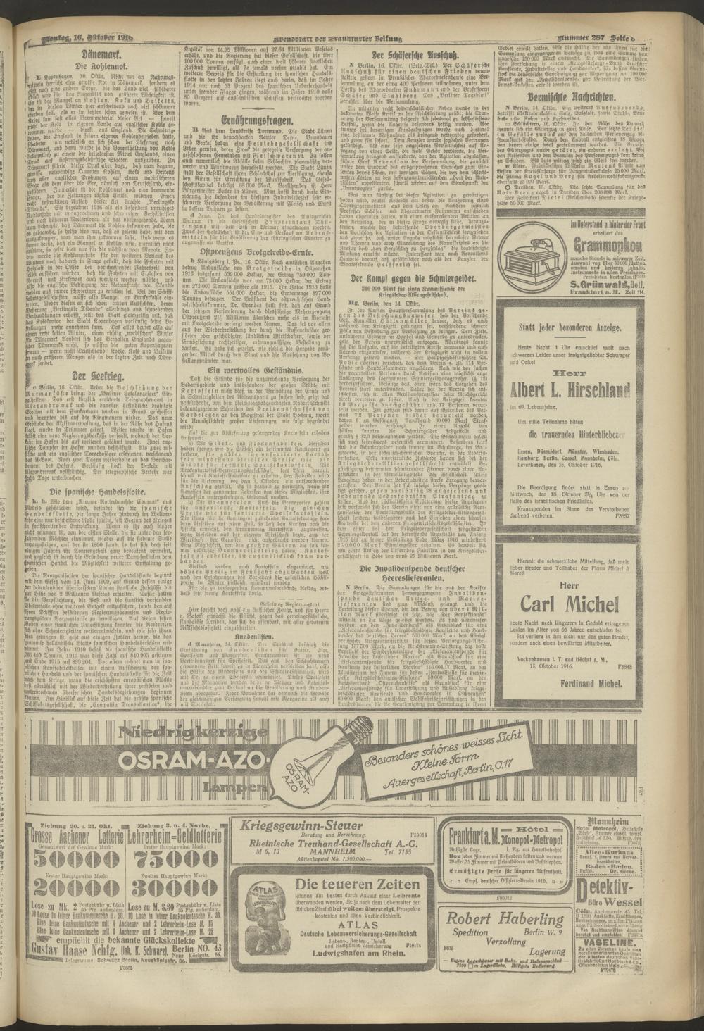16.10.1916 = Nr. 287. Abendblatt