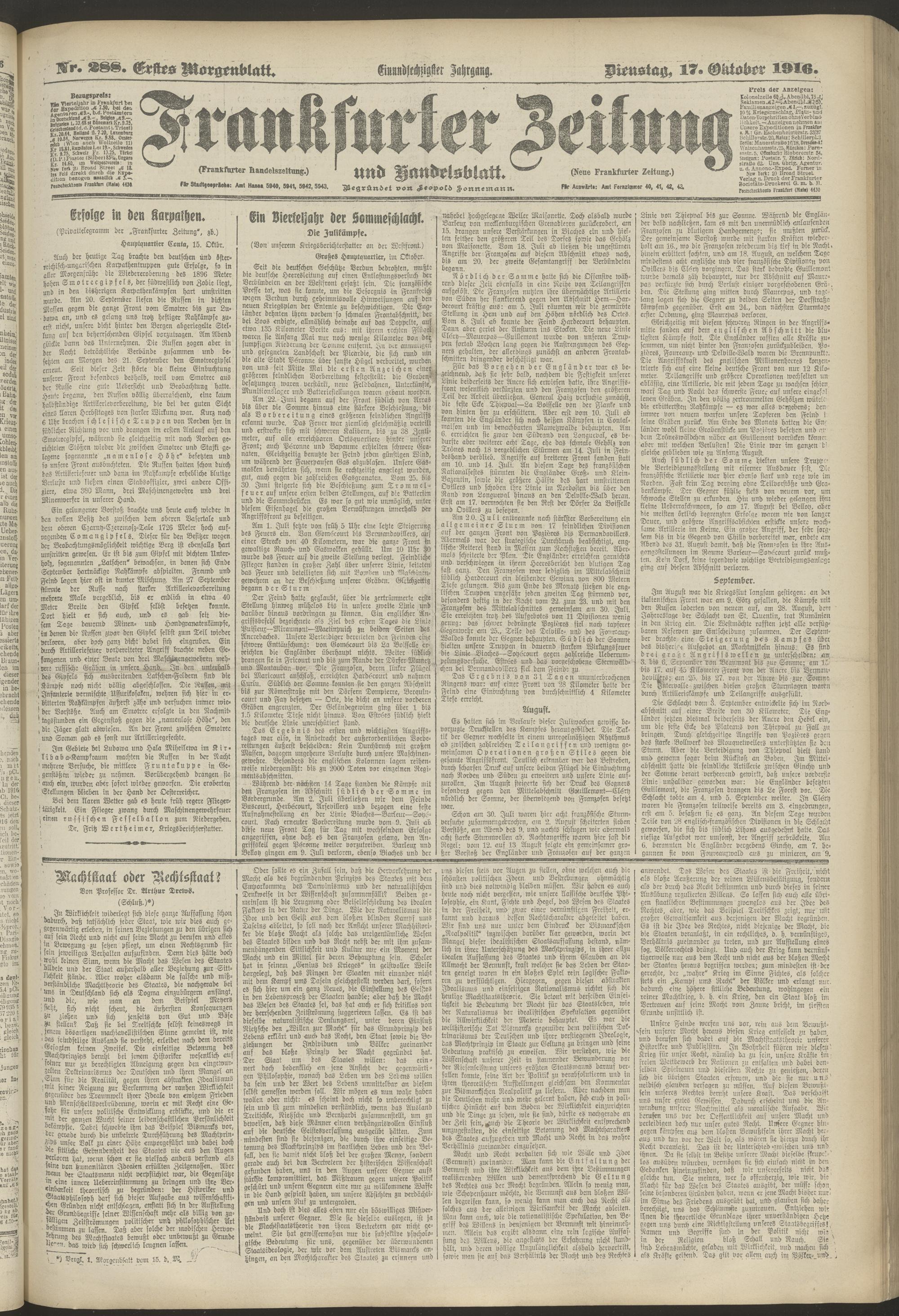 17.10.1916 = Nr. 288. Erstes Morgenblatt