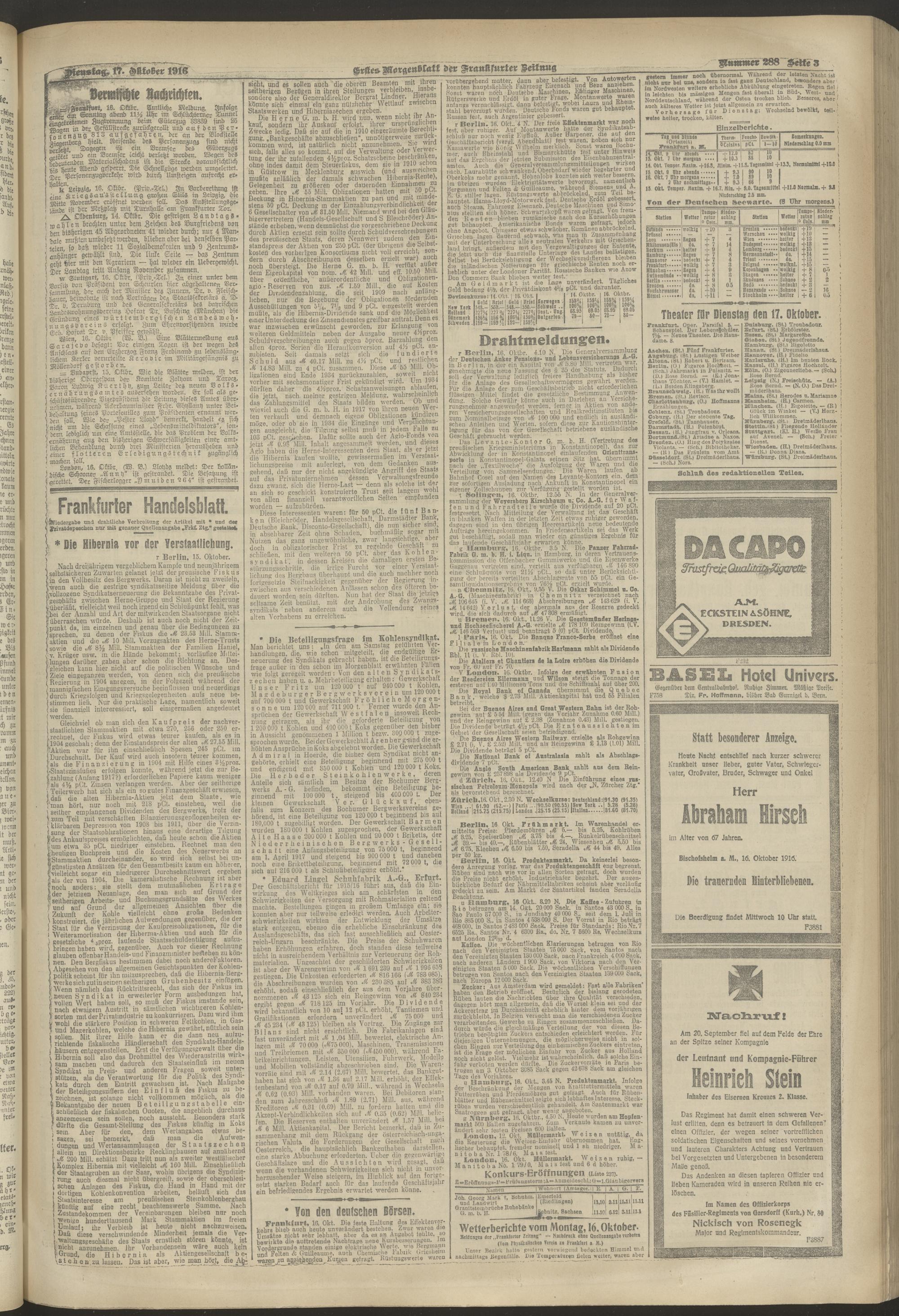 17.10.1916 = Nr. 288. Erstes Morgenblatt