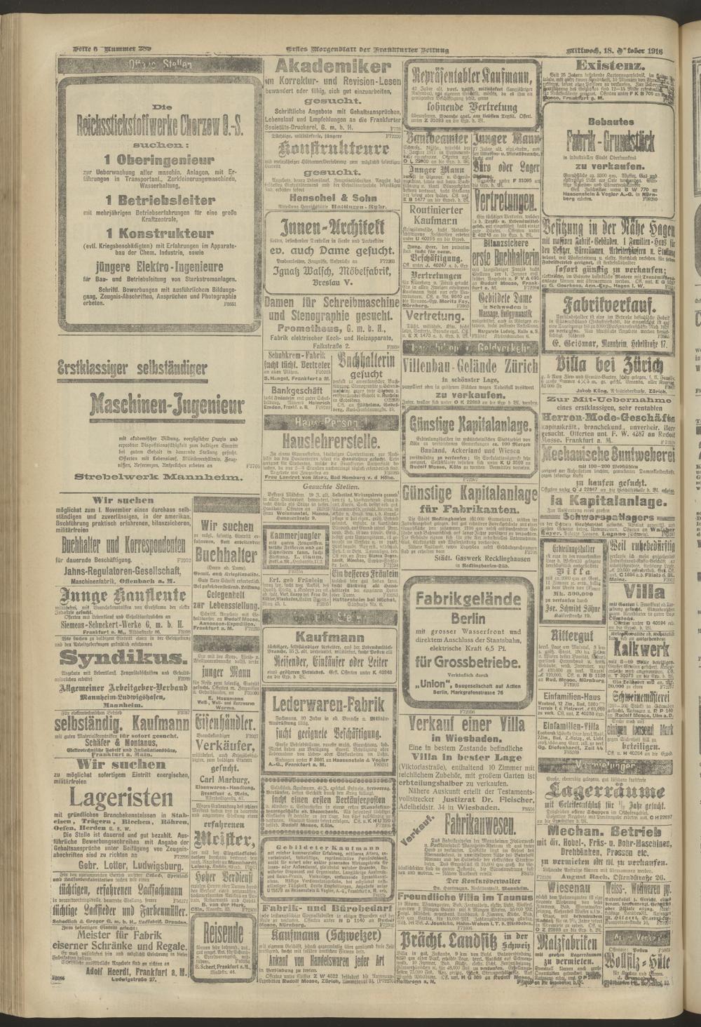 18.10.1916 = Nr. 289. Erstes Morgenblatt