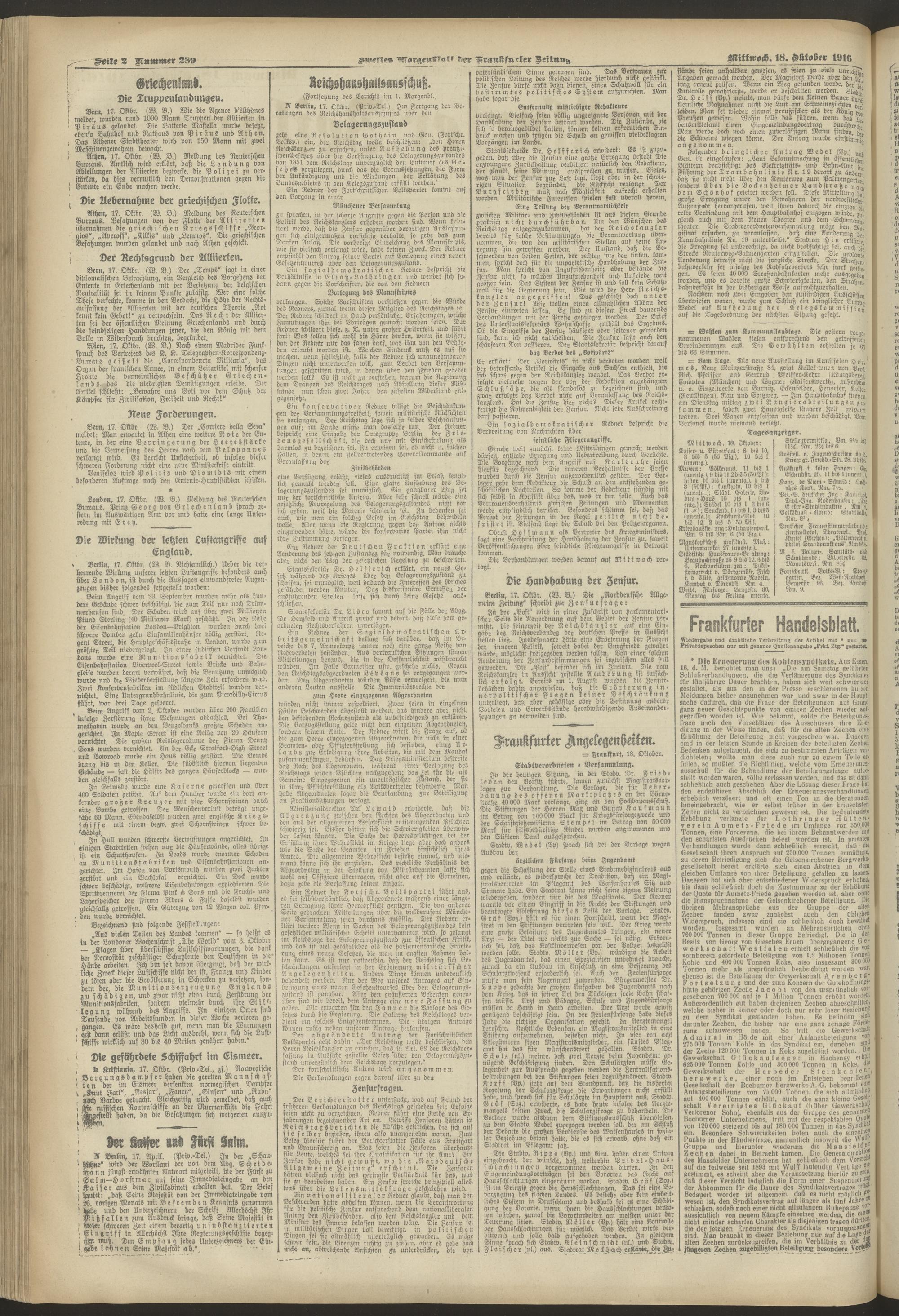 18.10.1916 = Nr. 289. Zweites Morgenblatt