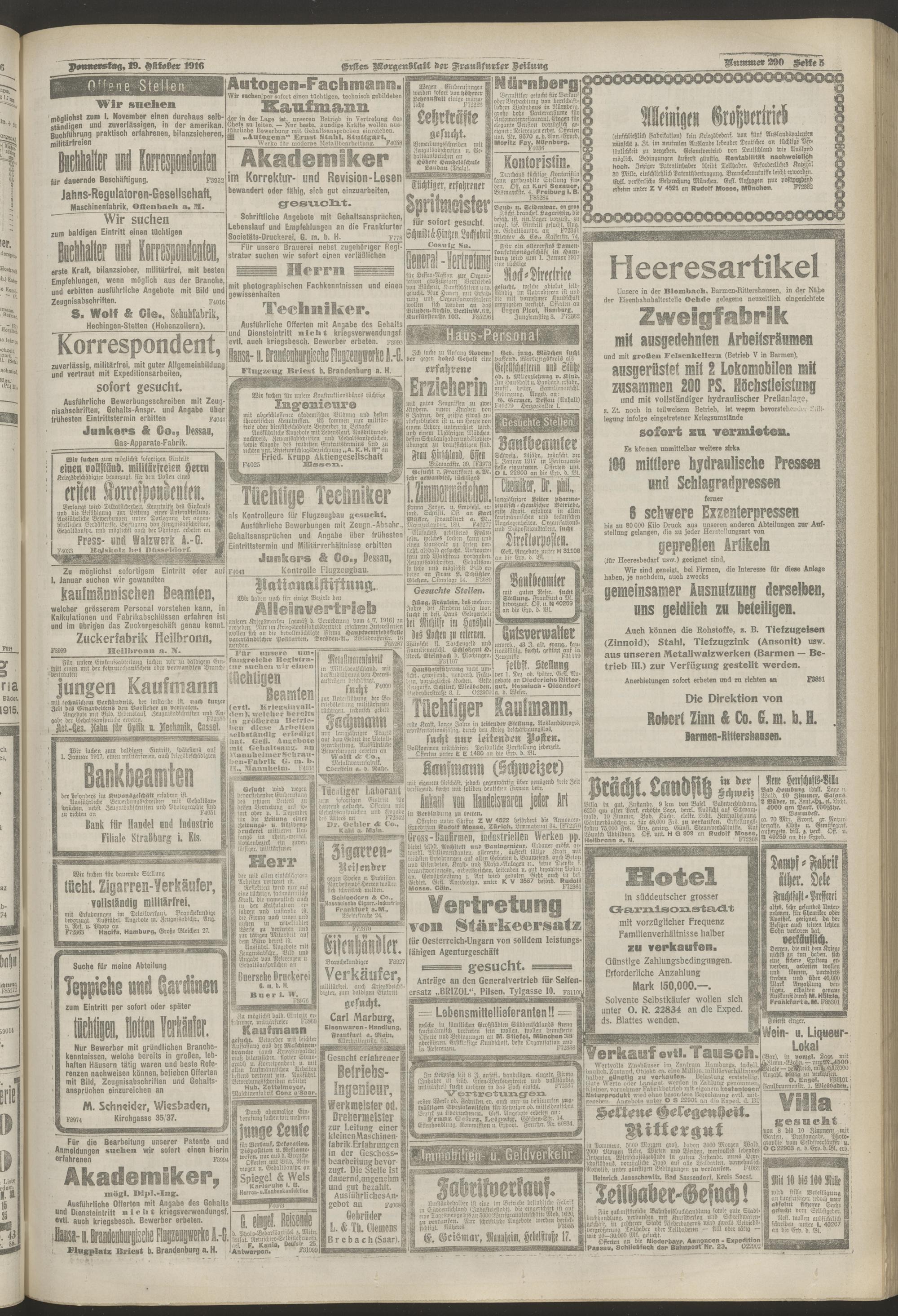 19.10.1916 = Nr. 290. Erstes Morgenblatt